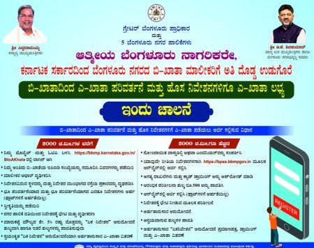 ಬೆಂಗಳೂರು : ಗ್ರೇಟರ್ ಬೆಂಗಳೂರು ಪ್ರಾಧಿಕಾರ ವ್ಯಾಪ್ತಿಯ ಬಿ-ಖಾತಾ ನಿವೇಶನ ಮಾಲೀಕರಿಗೆ ಬಿ-ಖಾತಾದಿಂದ ಎ-ಖಾತಾಗೆ ಪರಿವರ್ತನೆ ಮತ್ತು ಹೊಸ ನಿವೇಶನಗಳಿಗೂ…