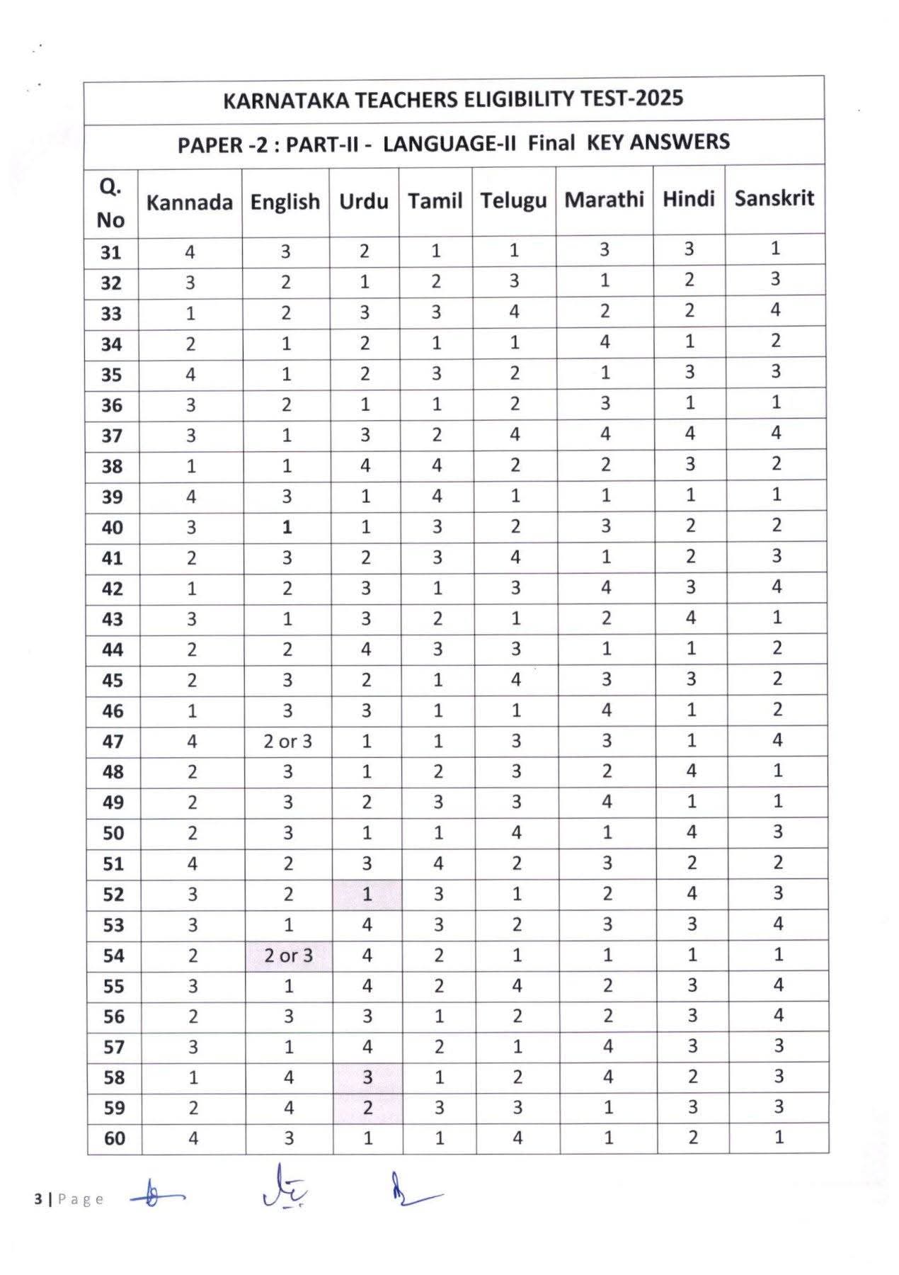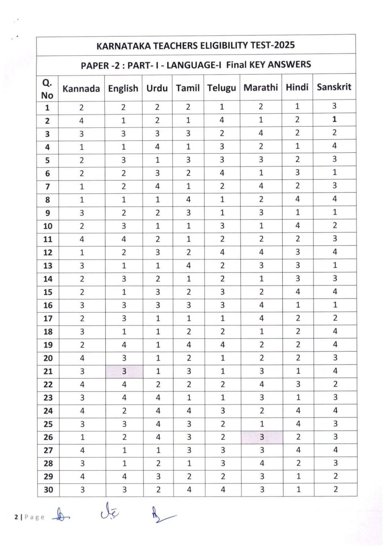 ದಿನಾಂಕ:07/12/2025 ರಂದು ನಡೆದ ಕರ್ನಾಟಕ ಶಿಕ್ಷಕರ ಅರ್ಹತಾ ಪರೀಕ್ಷೆ-2025ರ ಪರೀಕ್ಷೆಯ ಪತ್ರಿಕೆ-1 ಮತ್ತು ಪತ್ರಿಕೆ-2ರ ಕೀ-ಉತ್ತರಗಳನ್ನು ಇಲಾಖಾ ವೆಬ್ ಸೈಟ್ನಲ್ಲಿ ಪ್ರಕಟಿಸಲಾಗಿದೆ.