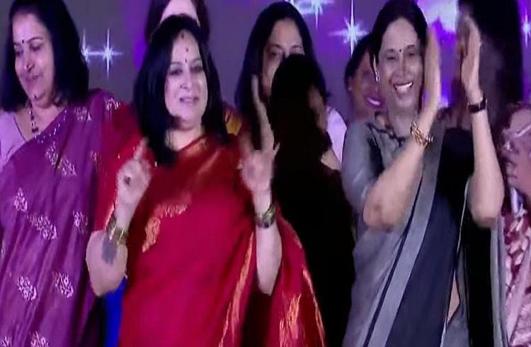 BREAKING: Lakshmi Hebbalkar Soumya Reddy dance brilliantly at the `Shakti Sanjee` event in Bengaluru!