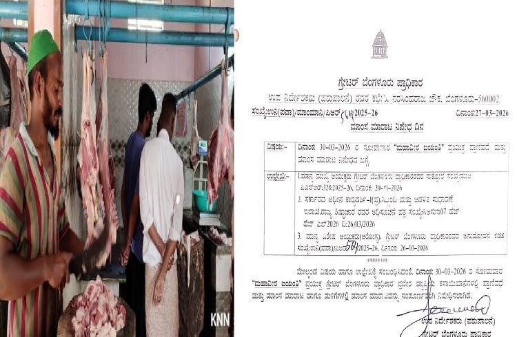 ಬೆಂಗಳೂರು: ಜೈನ ಧರ್ಮದ ಪವಿತ್ರ ಹಬ್ಬವಾದ ಮಹಾವೀರ ಜಯಂತಿಯ ಪ್ರಯುಕ್ತ ನಾಳೆ ಅಂದರೆ ಮಾರ್ಚ್ 30, ಸೋಮವಾರದಂದು ಗ್ರೇಟರ್ ಬೆಂಗಳೂರು ಪ್ರಾಧಿಕಾರ (BBMP) ವ್ಯಾಪ್ತಿಯಲ್ಲಿ ಪ್ರಾಣಿವಧೆ ಹಾಗೂ ಮಾಂಸ ಮಾರಾಟವನ್ನು ಸಂಪೂರ್ಣವಾಗಿ ನಿಷೇಧಿಸಿ ಆದೇಶ ಹೊರಡಿಸಲಾಗಿದೆ.