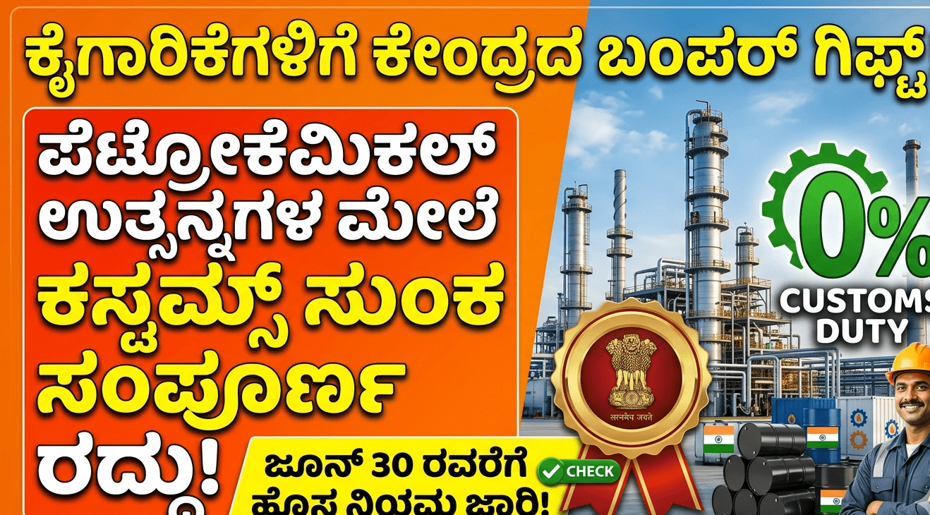 ನವದೆಹಲಿ:ಮಧ್ಯಪ್ರಾಚ್ಯದ ಸಂಘರ್ಷದಿಂದಾಗಿ ದೇಶದ ಕೈಗಾರಿಕೆಗಳ ಮೇಲೆ ಬೀರುತ್ತಿರುವ ಆರ್ಥಿಕ ಹೊರೆಯನ್ನು ಕಡಿಮೆ ಮಾಡಲು ಭಾರತ ಸರ್ಕಾರವು ಮಹತ್ವದ ನಿರ್ಧಾರ ಕೈಗೊಂಡಿದೆ. ಪ್ಲಾಸ್ಟಿಕ್, ಔಷಧ, ಮತ್ತು ಟೆಕ್ಸ್ಟೈಲ್ನಂತಹ ಪ್ರಮುಖ ವಲಯಗಳಲ್ಲಿ ಬಳಸಲಾಗುವ ಅತ್ಯಗತ್ಯ ಪೆಟ್ರೋಕೆಮಿಕಲ್ ಉತ್ಪನ್ನಗಳ (Petrochemical Products) ಮೇಲಿನ ಆಮದು ಸುಂಕವನ್ನು (Customs Duty) ಜೂನ್ 30, 2026 ರವರೆಗೆ ಸಂಪೂರ್ಣವಾಗಿ ಮನ್ನಾ ಮಾಡಲಾಗಿದೆ.