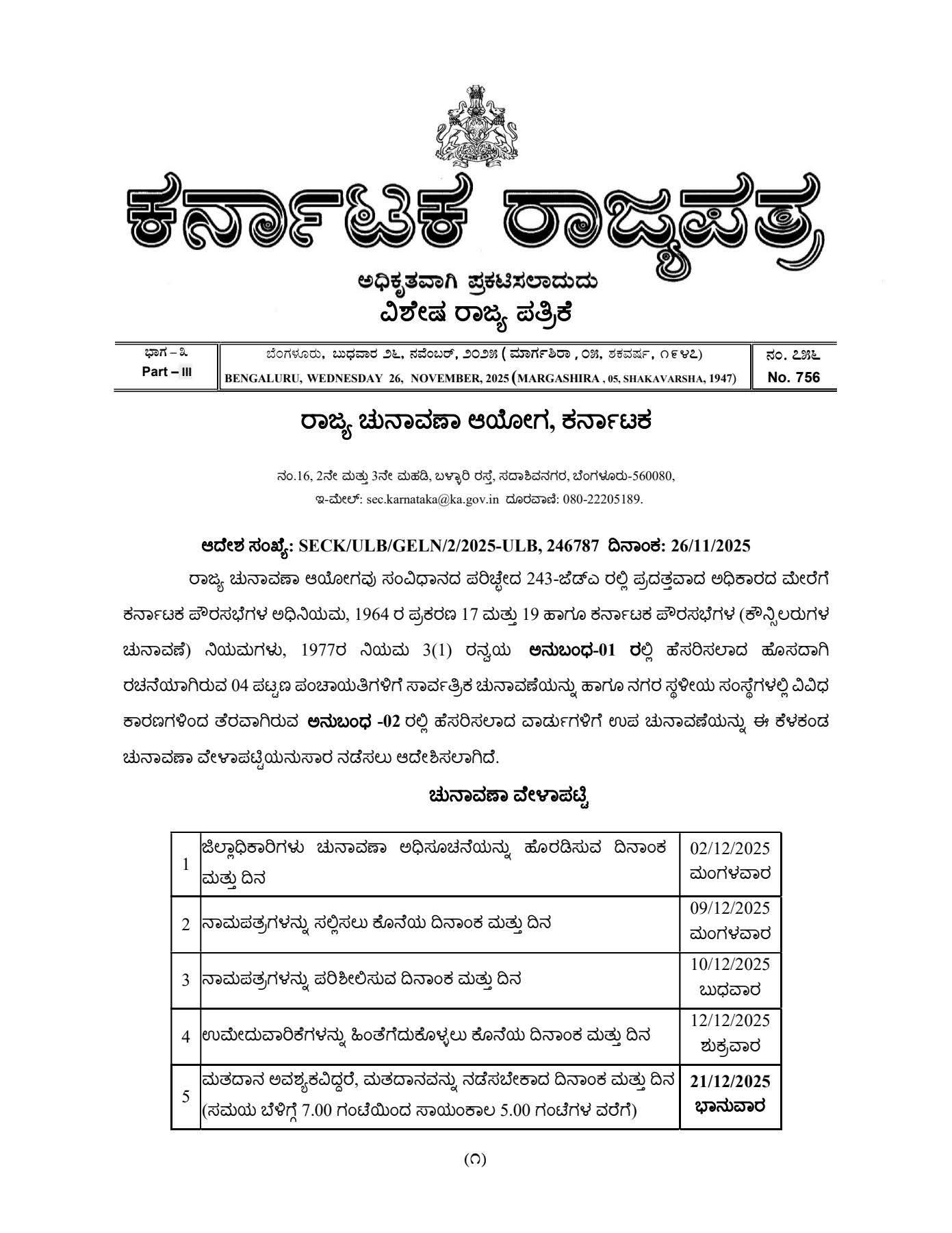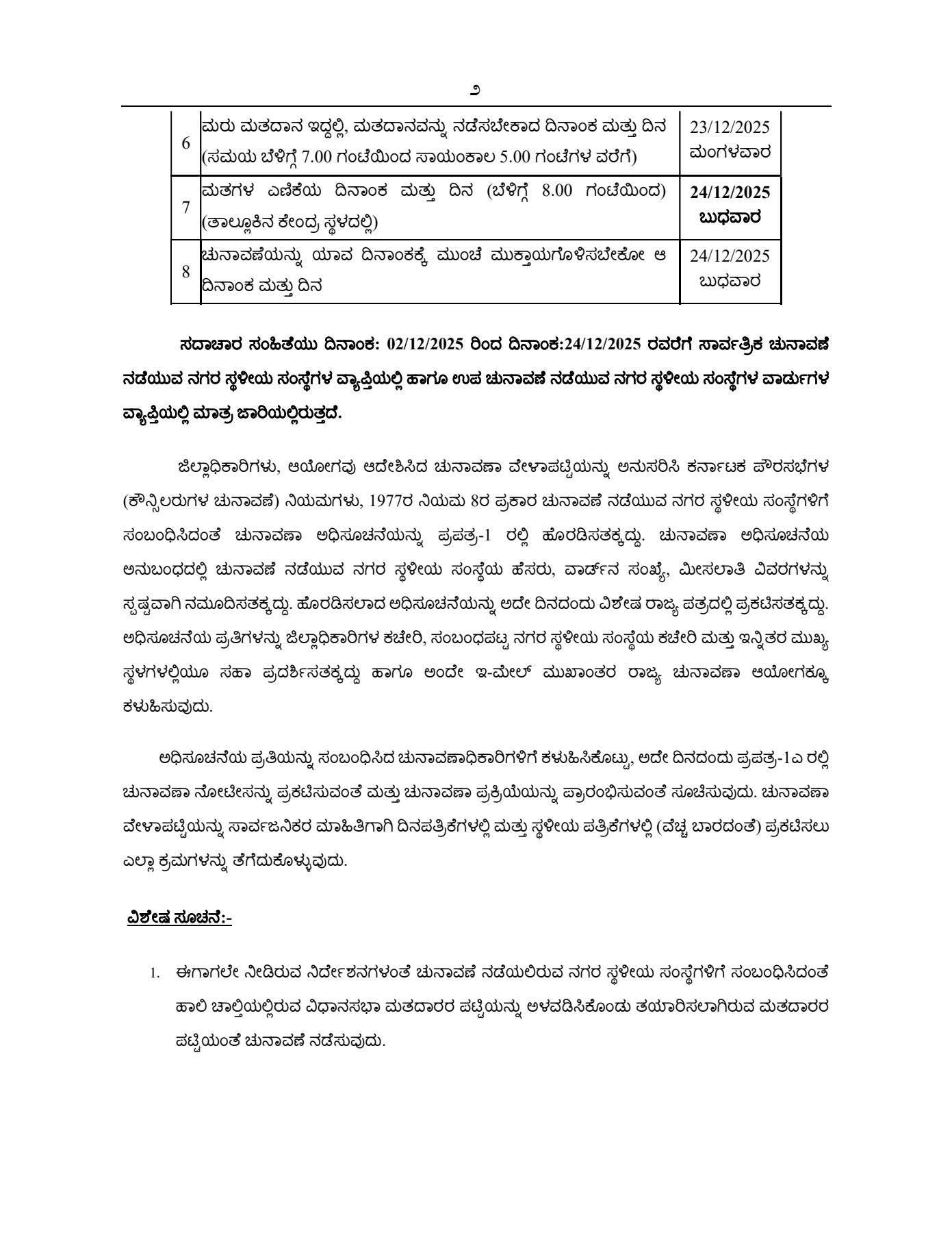 ಜಿಲ್ಲಾಧಿಕಾರಿಗಳು ಚುನಾವಣಾ ಅಧಿಸೂಚನೆಯನ್ನು ಹೊರಡಿಸುವ ದಿನಾಂಕ ಮತ್ತು ದಿನ 02/12/2025
