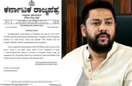 ಬೆಂಗಳೂರು: ವಾಲ್ಮೀಕಿ ಅಭಿವೃದ್ಧಿ ನಿಗಮದ ಹಣ ಅವ್ಯವಹಾರ ಸಂಬಂಧ ಸಚಿವ ಸ್ಥಾನಕ್ಕೆ ಬಿ ನಾಗೇಂದ್ರ ರಾಜೀನಾಮೆ ಸಲ್ಲಿಸಿದ್ದರು. ಸಿಎಂ ಸಿದ್ಧರಾಮಯ್ಯ ಅವರನ್ನು ಭೇಟಿಯಾಗಿ, ತಮ್ಮ ರಾಜೀನಾಮೆ ಪತ್ರವನ್ನು…