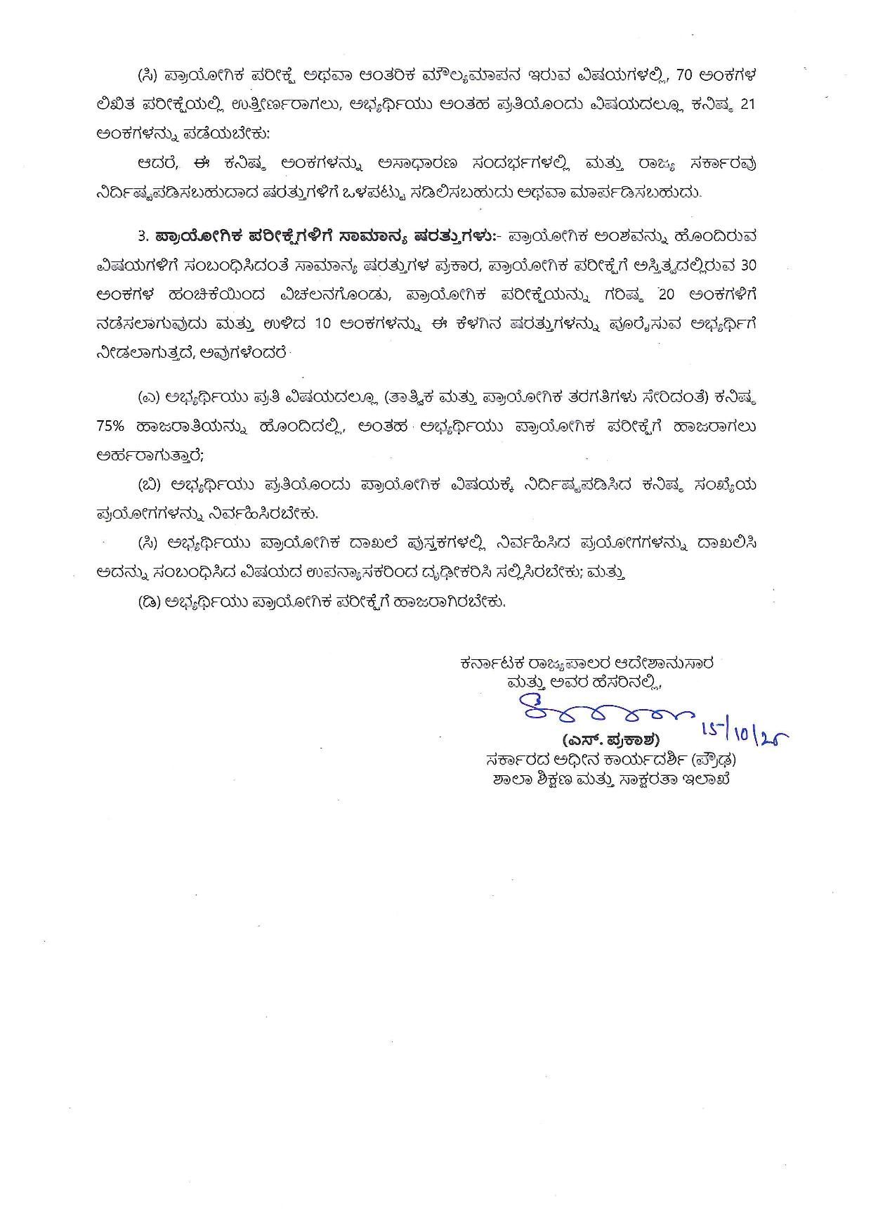 (ಡಿ) ಅಭ್ಯರ್ಥಿಯು ಪ್ರಾಯೋಗಿಕ ಪರೀಕ್ಷೆಗೆ ಹಾಜರಾಗಿರಬೇಕು ಎಂದು ಅಧಿಕೃತ ಆದೇಶದಲ್ಲಿ ಸರ್ಕಾರದ ಅಧೀನ ಕಾರ್ಯದರ್ಶಿ (ಪ್ರೌಢ) ಶಾಲಾ ಶಿಕ್ಷಣ ಮತ್ತು ಸಾಕ್ಷರತಾ ಇಲಾಖೆಯಿಂದ ಅಧಿಕೃತ ಆದೇಶ ಹೊರಡಿಸಲಾಗಿದೆ.