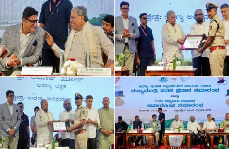 ಬೆಂಗಳೂರು : ಇಂದು ಅರಣ್ಯ, ಜೀವಿಶಾಸ್ತ್ರ ಮತ್ತು ಪರಿಸರ ಇಲಾಖೆ ಆಯೋಜಿಸಿದ್ದ ಮುಖ್ಯಮಂತ್ರಿಗಳ ಪದಕ ಪ್ರಧಾನ ಸಮಾರಂಭ ಮತ್ತು 71ನೇ ವನ್ಯಜೀವಿ ಸಪ್ತಾಹದ ಸಮಾರೋಪ ಸಮಾರಂಭದಲ್ಲಿ ಪಾಲ್ಗೊಂಡು, ಅಮೋಘ ಸೇವೆ ಸಲ್ಲಿಸಿದ ಅರಣ್ಯ ಸಿಬ್ಬಂದಿಗಳಿಗೆ ಪದಕ ನೀಡಿ ಸಿಎಂ ಸಿದ್ದರಾಮಯ್ಯ ಗೌರವಿಸಿದ್ದಾರೆ.
