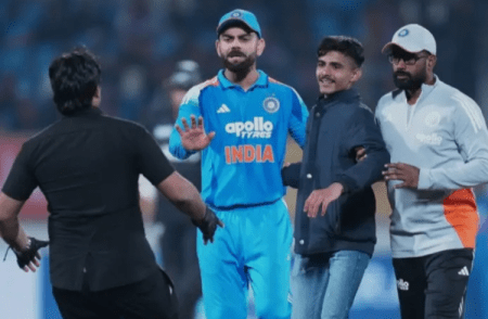 Watch video: ಕೊಹ್ಲಿ ತಡೆದ್ರೂ ಬಿಡದ ಅಧಿಕಾರಿ! ಮೈದಾನಕ್ಕೆ ನುಗ್ಗಿದ ಅಭಿಮಾನಿಯ ಕಪಾಳಕ್ಕೆ ಬಿತ್ತು ಬಿಸಿ ಬಿಸಿ ಏಟು