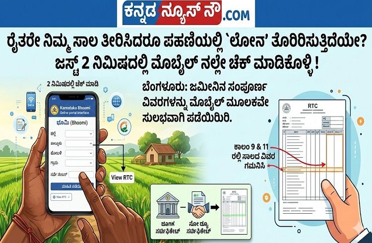 ಬೆಂಗಳೂರು: ರೈತರು ಜಮೀನಿನ ಸಾಲದ ವಿವರ ತಿಳಿಯಲು ಅಥವಾ ಪಹಣಿಯಲ್ಲಿನ ಸಾಲದ ಎಂಟ್ರಿ ತಿದ್ದಲು ಬ್ಯಾಂಕ್ ಹಾಗೂ ಕಂದಾಯ ಕಚೇರಿಗಳಿಗೆ ಅಲೆಯಬೇಕಿತ್ತು. ಆದರೆ ಈಗ ಡಿಜಿಟಲ್ ಯುಗದಲ್ಲಿ, ನಿಮ್ಮ ಕೈಯಲ್ಲಿರುವ ಮೊಬೈಲ್ ಮೂಲಕವೇ ಕೇವಲ 2 ನಿಮಿಷದಲ್ಲಿ ಜಮೀನಿನ ಸಂಪೂರ್ಣ ವಿವರಗಳನ್ನು ಪಡೆಯಬಹುದು.