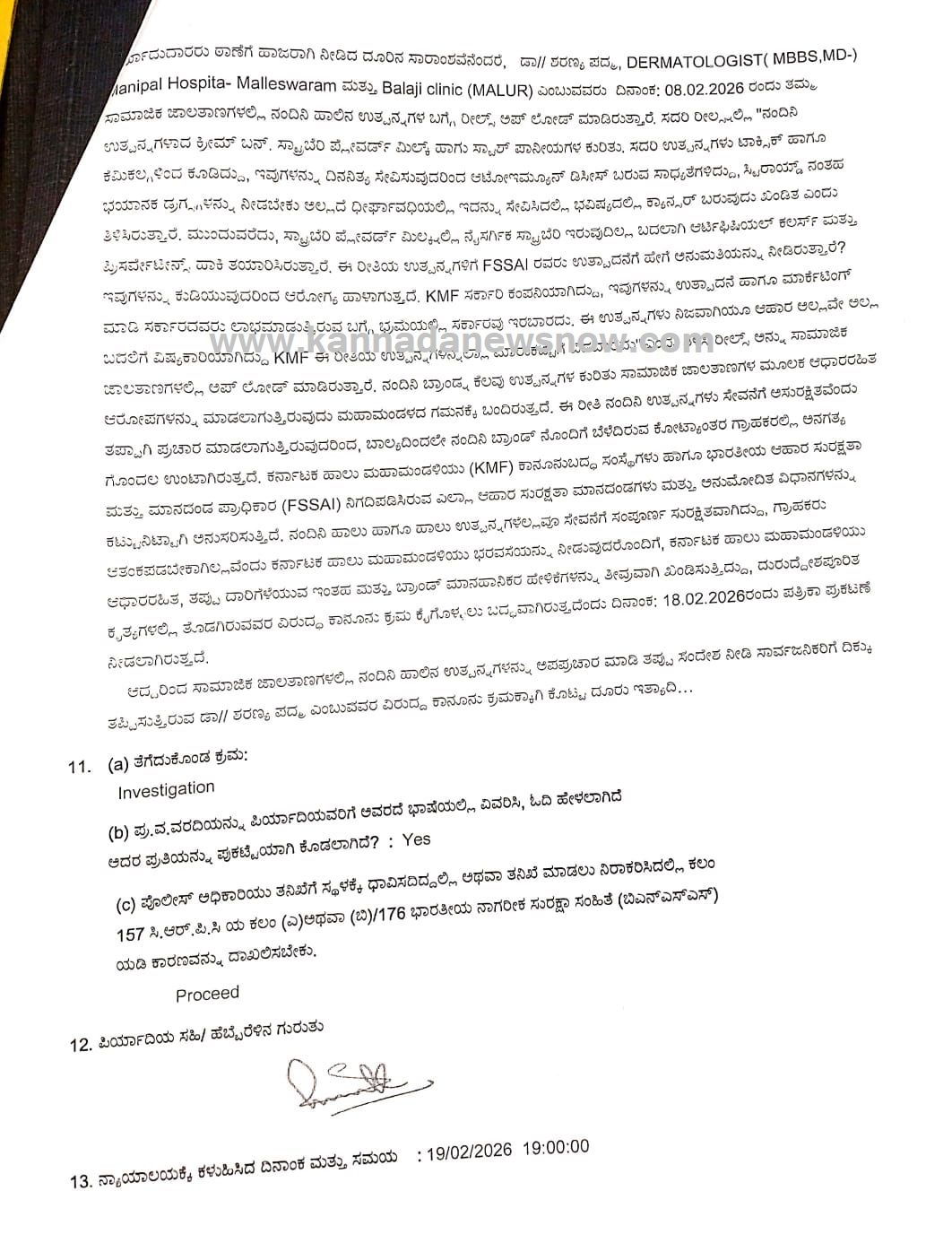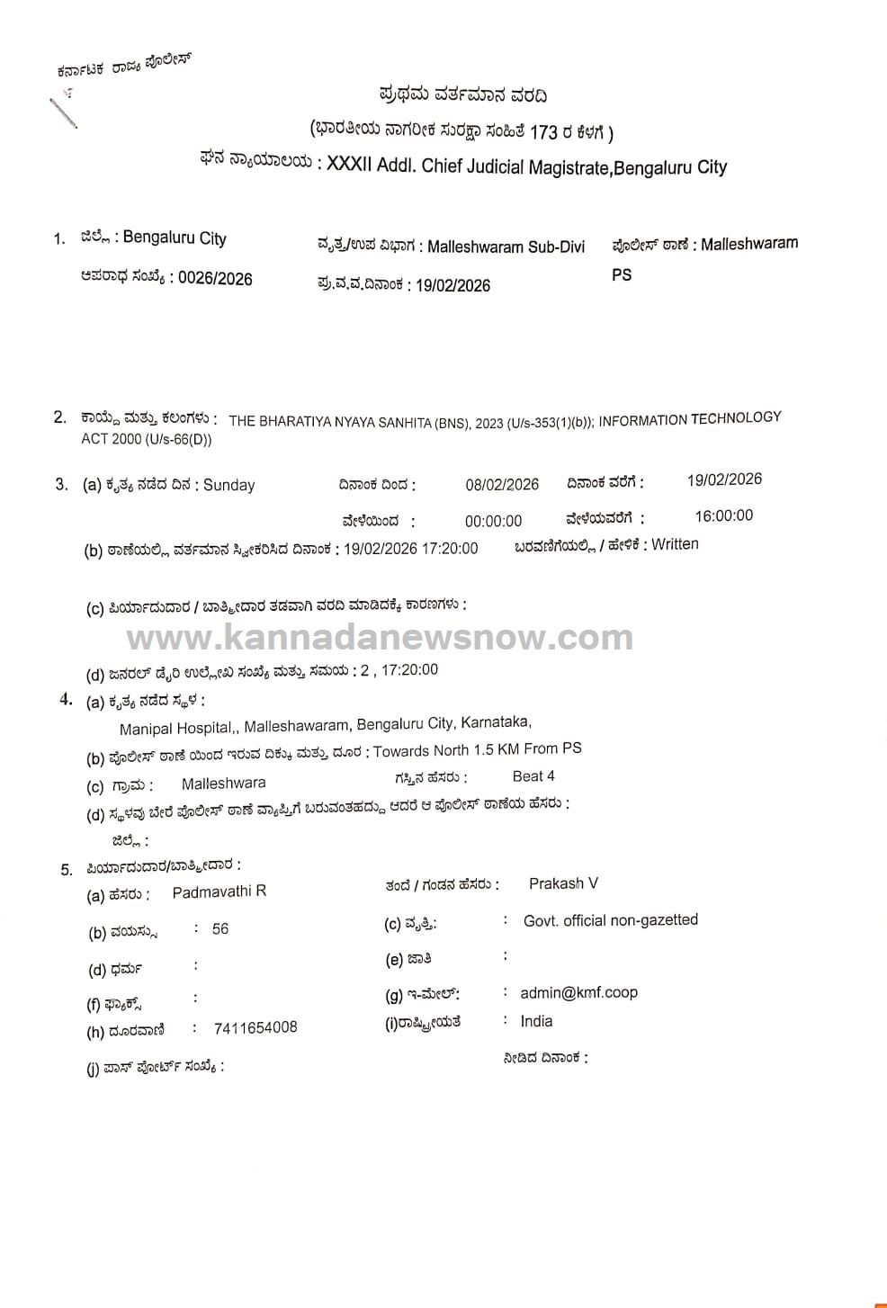 ಈ ಕುರಿತಂತೆ ಕೆಎಂಎಫ್ ನ ಪದ್ಮಾವತಿ.ಆರ್ ಎಂಬುವರು ಮಲ್ಲೇಶ್ವರಂ ಪೊಲೀಸ್ ಠಾಣೆಗೆ ದೂರು ನೀಡಿದ್ದಾರೆ. ಈ ದೂರು ಆಧರಿಸಿ ಡಾ.ಶರಣ್ಯ ಎಂಬುವರ ವಿರುದ್ಧ ಬಿಎನ್ ಎಸ್ ಕಾಯ್ದೆಯ 353(1)(ಬಿ) ಹಾಗೂ ಮಾಹಿತಿ ತಂತ್ರಜ್ಞಾನ ಕಾಯ್ದೆ 2000ರ 66(ಡಿ) ಅಡಿಯಲ್ಲಿ ಎಫ್ಐಆರ್ ದಾಖಲಾಗಿದೆ.
