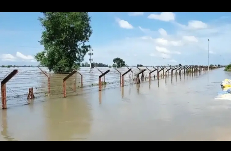 ಚಂಡಿಗಢ: ಪಂಜಾಬ್ ಮತ್ತು ಜಮ್ಮುವಿನ ಮುಂಚೂಣಿ ಪ್ರದೇಶಗಳಲ್ಲಿ ಪ್ರವಾಹದಿಂದಾಗಿ ಇಂಡೋ-ಪಾಕ್ ಅಂತರರಾಷ್ಟ್ರೀಯ ಗಡಿಯ ಝೀರೋ ಲೈನ್ ಬಳಿ ಸುಮಾರು 110 ಕಿ.ಮೀ ಬೇಲಿ ಹಾನಿಯಾಗಿದೆ ಮತ್ತು ಗಡಿ ಭದ್ರತಾ ಪಡೆಯ (ಬಿಎಸ್ಎಫ್) ಸುಮಾರು 90 ಪೋಸ್ಟ್ಗಳು ಗಡಿ ಸ್ತಂಭಗಳಲ್ಲದೆ ಮುಳುಗಿವೆ.