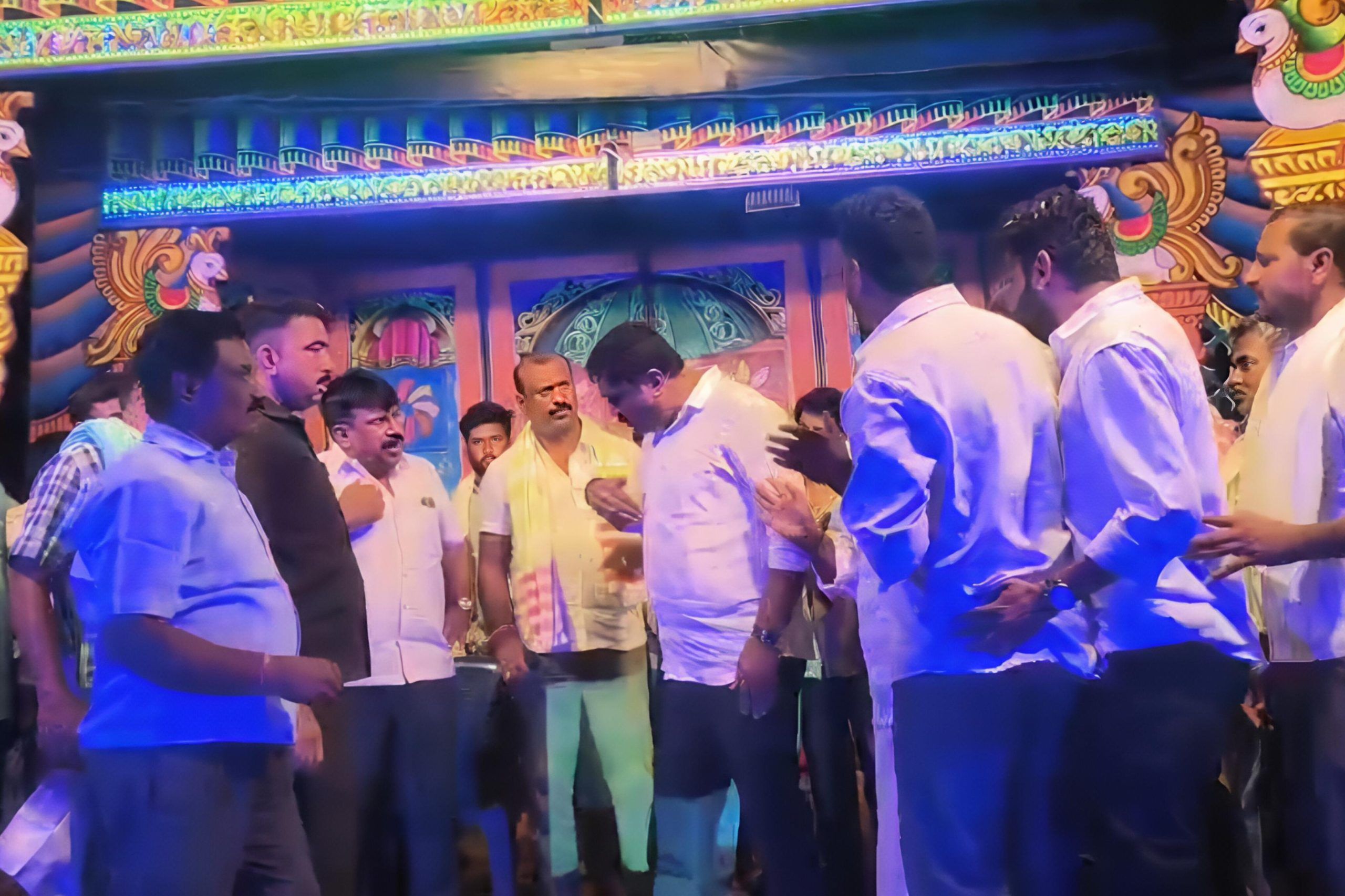 ಇಬ್ಬರು ನಾಯಕರು ವೇದಿಕೆಯ ಮೇಲೆಯೇ ಪರಸ್ಪರ ಏಕವಚನದಲ್ಲಿ ನಿಂದಿಸಿಕೊಳ್ಳುತ್ತಿರುವ ದೃಶ್ಯಗಳನ್ನು ಅಲ್ಲಿದ್ದ ಸಾರ್ವಜನಿಕರು ತಮ್ಮ ಮೊಬೈಲ್ಗಳಲ್ಲಿ ಸೆರೆಹಿಡಿದಿದ್ದಾರೆ. ಈ ವಿಡಿಯೋಗಳು ಇದೀಗ ಸಾಮಾಜಿಕ ಜಾಲತಾಣಗಳಲ್ಲಿ ಭಾರಿ ವೈರಲ್ ಆಗಿವೆ. ಕೊನೆಗೆ ಸ್ಥಳೀಯರು ಮಧ್ಯಪ್ರವೇಶಿಸಿ ಇಬ್ಬರನ್ನೂ ಸಮಾಧಾನಪಡಿಸುವ ಮೂಲಕ ಪರಿಸ್ಥಿತಿಯನ್ನು ನಿಯಂತ್ರಣಕ್ಕೆ ತಂದರು.