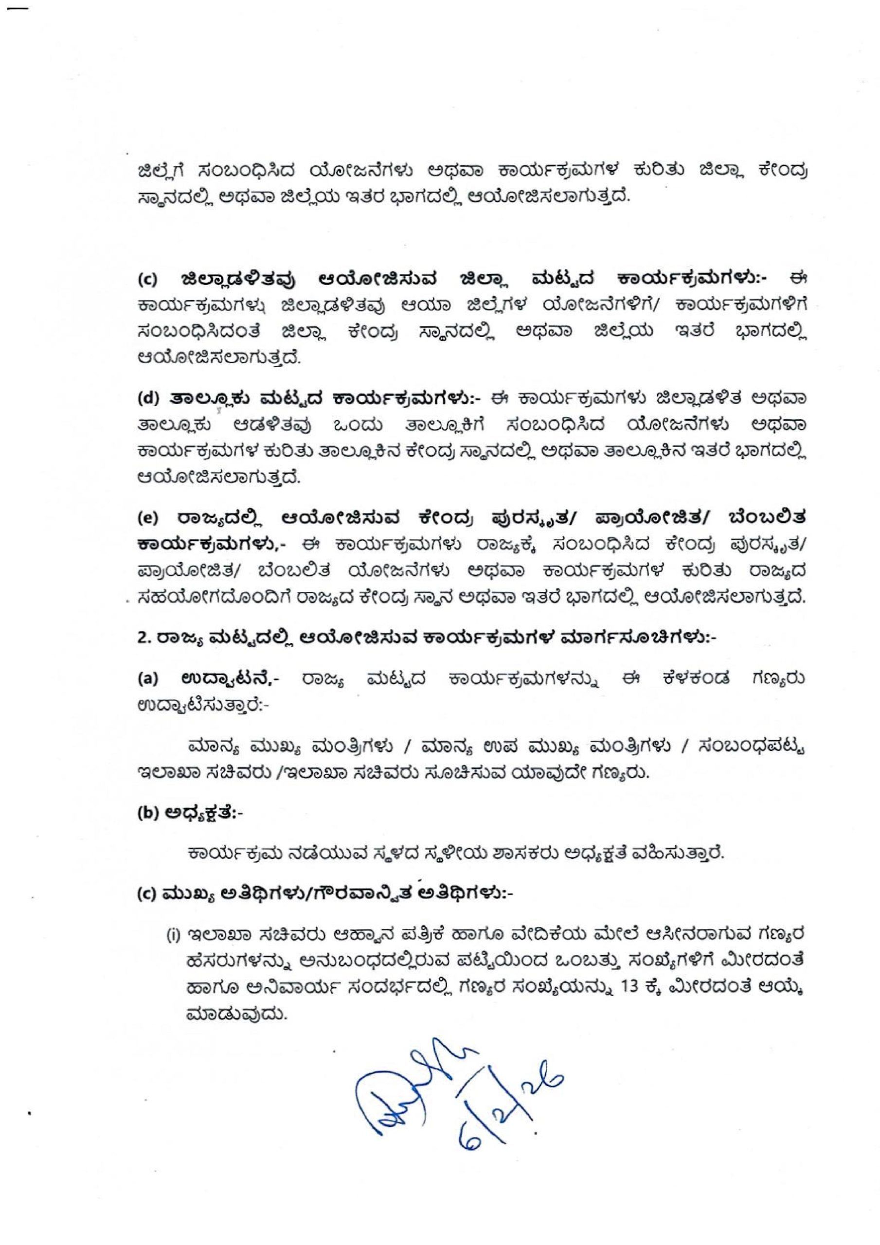 (c) ಜಿಲ್ಲಾಡಳಿತವು ಆಯೋಜಿಸುವ ಜಿಲ್ಲಾ ಮಟ್ಟದ ಕಾರ್ಯಕ್ರಮಗಳು:- ಈ ಕಾರ್ಯಕ್ರಮಗಳು ಜಿಲ್ಲಾಡಳಿತವು ಆಯಾ ಜಿಲ್ಲೆಗಳ ಯೋಜನೆಗಳಿಗೆ/ ಕಾರ್ಯಕ್ರಮಗಳಿಗೆ ಸಂಬಂಧಿಸಿದಂತೆ ಜಿಲ್ಲಾ ಕೇಂದ್ರ ಸ್ಥಾನದಲ್ಲಿ ಅಥವಾ ಜಿಲ್ಲೆಯ ಇತರೆ ಭಾಗದಲ್ಲಿ ಆಯೋಜಿಸಲಾಗುತ್ತದೆ.