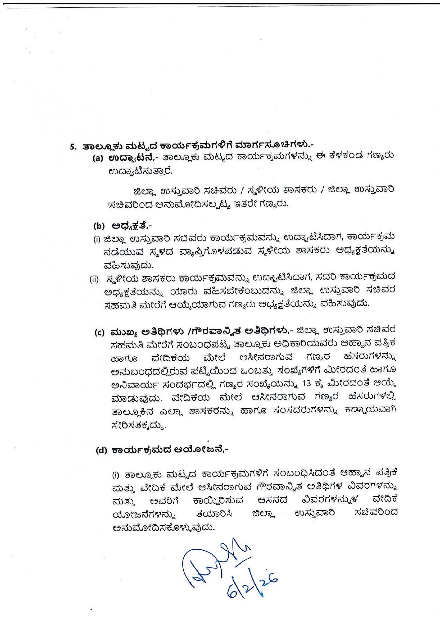 (b) ಅಧ್ಯಕ್ಷತೆ:- ಕಾರ್ಯಕ್ರಮ ನಡೆಯುವ ಸ್ಥಳದ ಸ್ಥಳೀಯ ಶಾಸಕರು ಅಧ್ಯಕ್ಷತೆ ವಹಿಸುತ್ತಾರೆ.