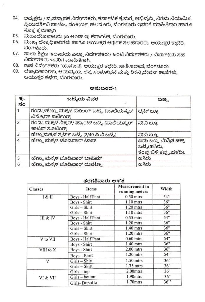 ಹೊಲಿಗೆ ವೆಚ್ಚ ಪೋಷಕರ ಜವಾಬ್ದಾರಿ: ಸರ್ಕಾರವು ಕೇವಲ ಸಮವಸ್ತ್ರದ ಬಟ್ಟೆಯನ್ನು ಮಾತ್ರ ಉಚಿತವಾಗಿ ನೀಡುತ್ತಿದ್ದು, ಅದರ ಹೊಲಿಗೆ ವೆಚ್ಚವನ್ನು ಫಲಾನುಭವಿ ಮಕ್ಕಳ ಪೋಷಕರೇ ಭರಿಸಬೇಕೆಂದು ಸೂಚಿಸಲಾಗಿದೆ.