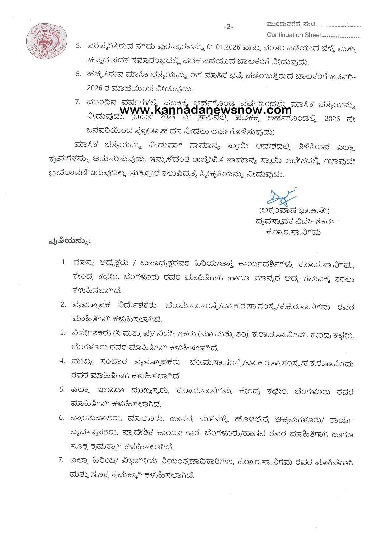 6. ಹೆಚ್ಚಿಸಿರುವ ಮಾಸಿಕ ಭತ್ಯೆಯನ್ನು ಈಗ ಮಾಸಿಕ ಭತ್ಯೆ ಪಡೆಯುತ್ತಿರುವ ಚಾಲಕರಿಗೆ ಜನವರಿ- 2026 ರ ಮಾಹೆಯಿಂದ ನೀಡುವುದು.