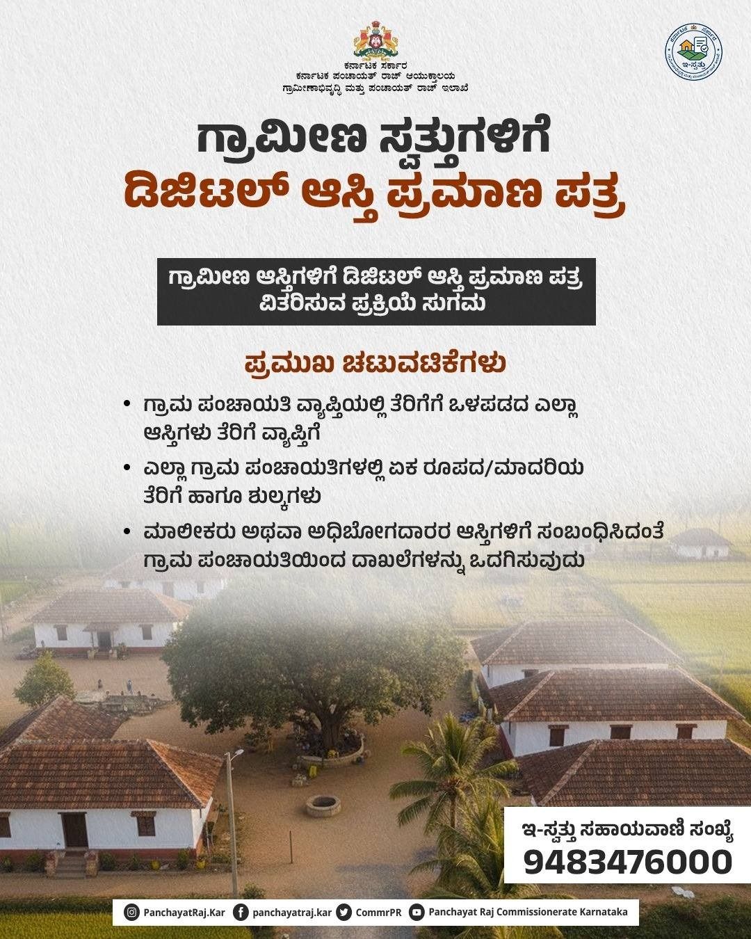 ಗ್ರಾಮೀಣ ಆಸ್ತಿಗಳಿಗೆ ಡಿಜಿಟಲ್ ಆಸ್ತಿ ಪ್ರಮಾಣ ಪತ್ರ ವಿತರಿಸುವ ಪ್ರಕ್ರಿಯೆ ಸುಗಮ