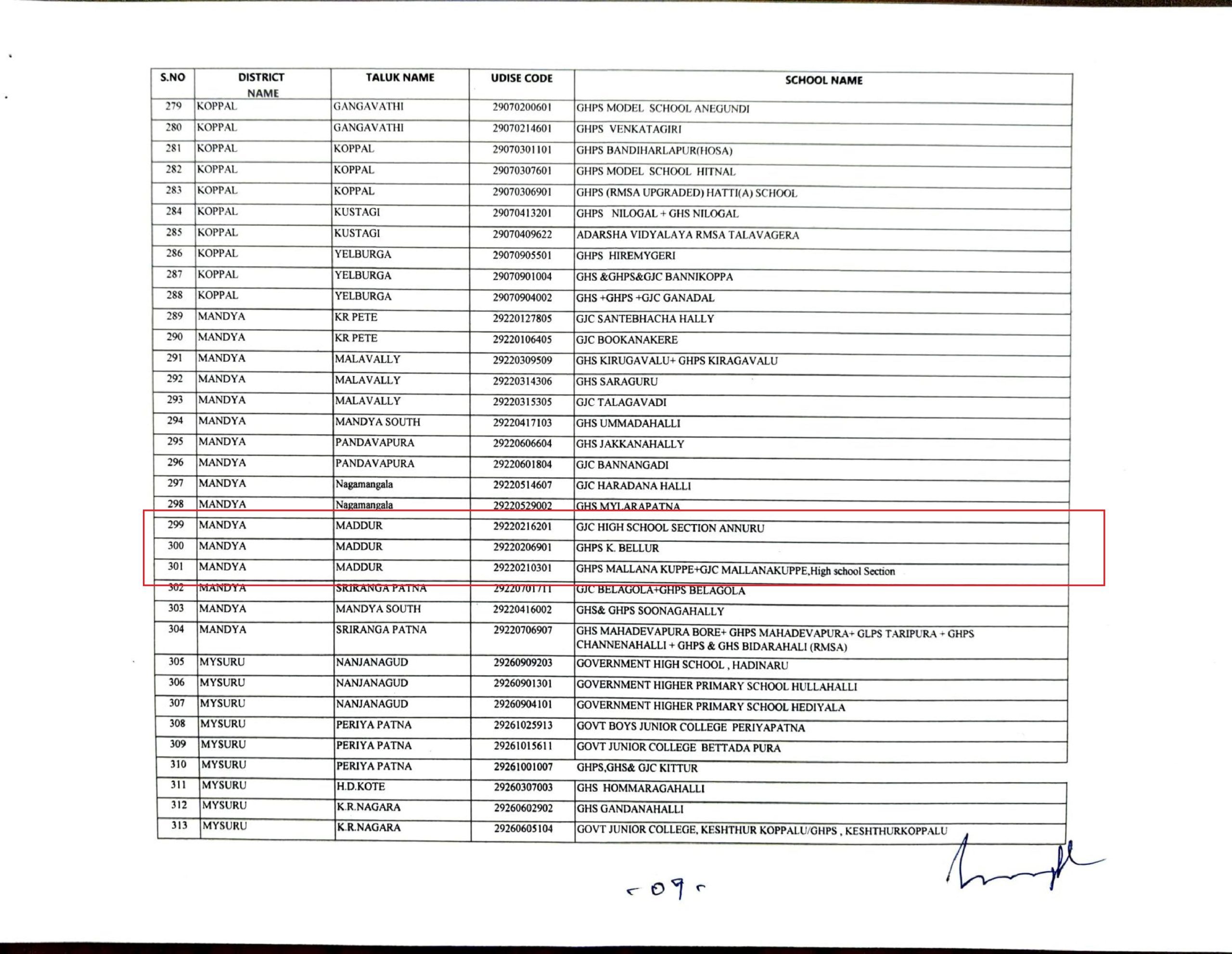 1. ಮದ್ದೂರಿನ ಅಣ್ಣೂರಿನ ಸರ್ಕಾರಿ ಜೂನಿಯರ್ ಕಾಲೇಜಿನ ಪ್ರೌಢ ಶಾಲೆಯನ್ನು ಕರ್ನಾಟಕ ಪಬ್ಲಿಕ್ ಶಾಲೆಯಾಗಿ ಉನ್ನತೀಕರಣ