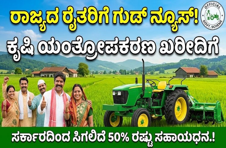 ರಾಜ್ಯದ ರೈತರಿಗೆ ಗುಡ್ ನ್ಯೂಸ್ : ಕೃಷಿ ಯಂತ್ರೋಪಕರಣಗಳ ಖರೀದಿಗೆ ಸರ್ಕಾರದಿಂದ ಸಿಗಲಿದೆ ಶೇ.50 ರಷ್ಟು ಸಹಾಯಧನ.!