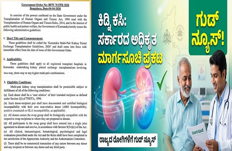 ರಾಜ್ಯದ `ಕಿಡ್ನಿ ವೈಫಲ್ಯ ರೋಗಿಗಳಿಗೆ’ ಗುಡ್ ನ್ಯೂಸ್ : `ಕಿಡ್ನಿ ಕಸಿ’ಗೆ ಸರ್ಕಾರದಿಂದ ಅಧಿಕೃತ ಮಾರ್ಗಸೂಚಿ ಪ್ರಕಟ