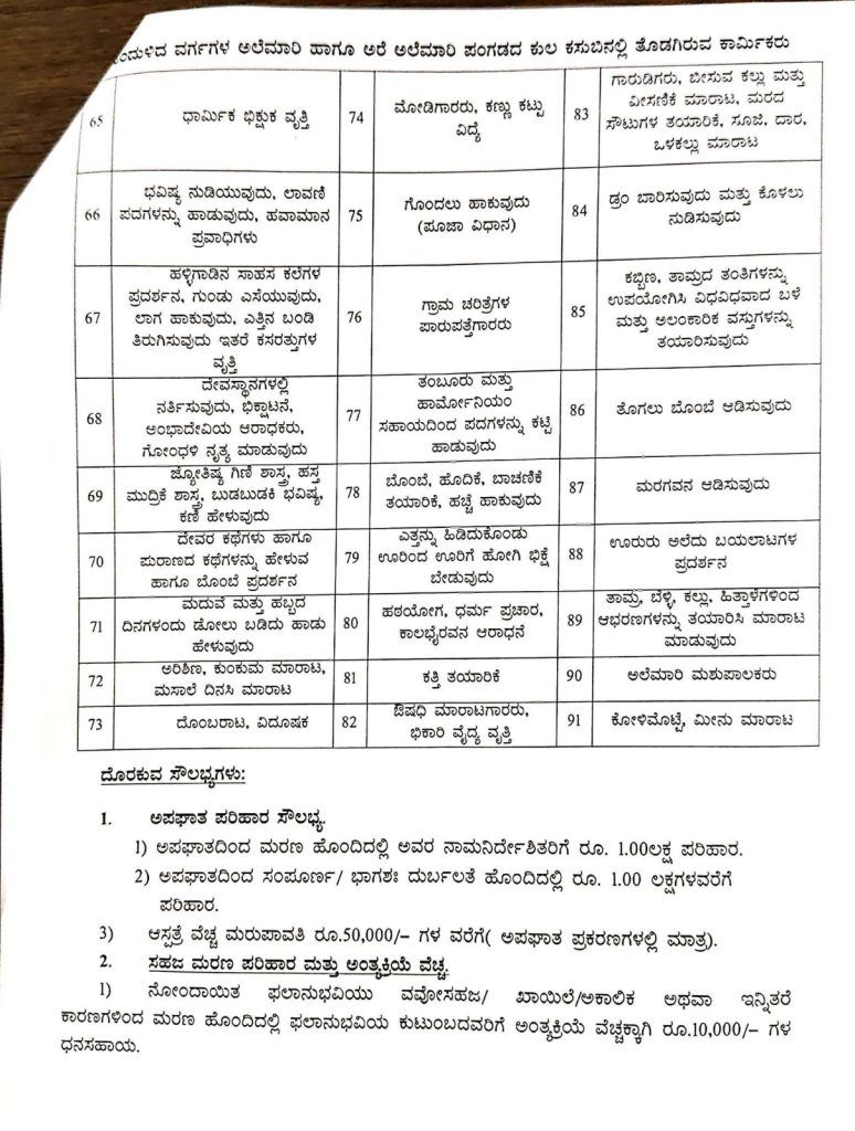 ಅಪಘಾತ ಪರಿಹಾರ: ಕೆಲಸದ ಸಮಯದಲ್ಲಿ ಅಪಘಾತ ಸಂಭವಿಸಿ ಮರಣ ಹೊಂದಿದರೆ ವಾರಸುದಾರರಿಗೆ ರೂ. 1.00 ಲಕ್ಷ ಪರಿಹಾರ.