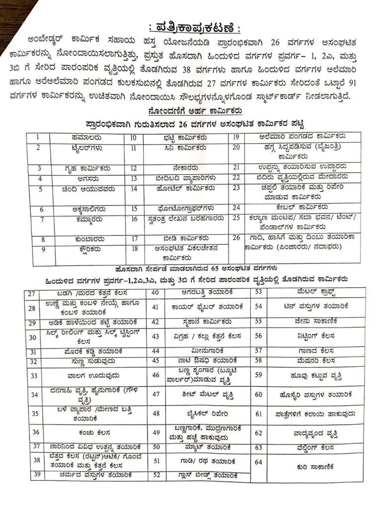 ಕಾರ್ಮಿಕರಿಗೆ ಗುಡ್ ನ್ಯೂಸ್ : ಅಂಬೇಡ್ಕರ್ ಕಾರ್ಮಿಕ ಸಹಾಯ ಹಸ್ತ ಯೋಜನೆಯಡಿ ಅಸಂಘಟಿತ ಕಾರ್ಮಿಕರಿಗೆ ಸಿಗಲಿದೆ ಸ್ಮಾರ್ಟ್ ಕಾರ್ಡ್.!