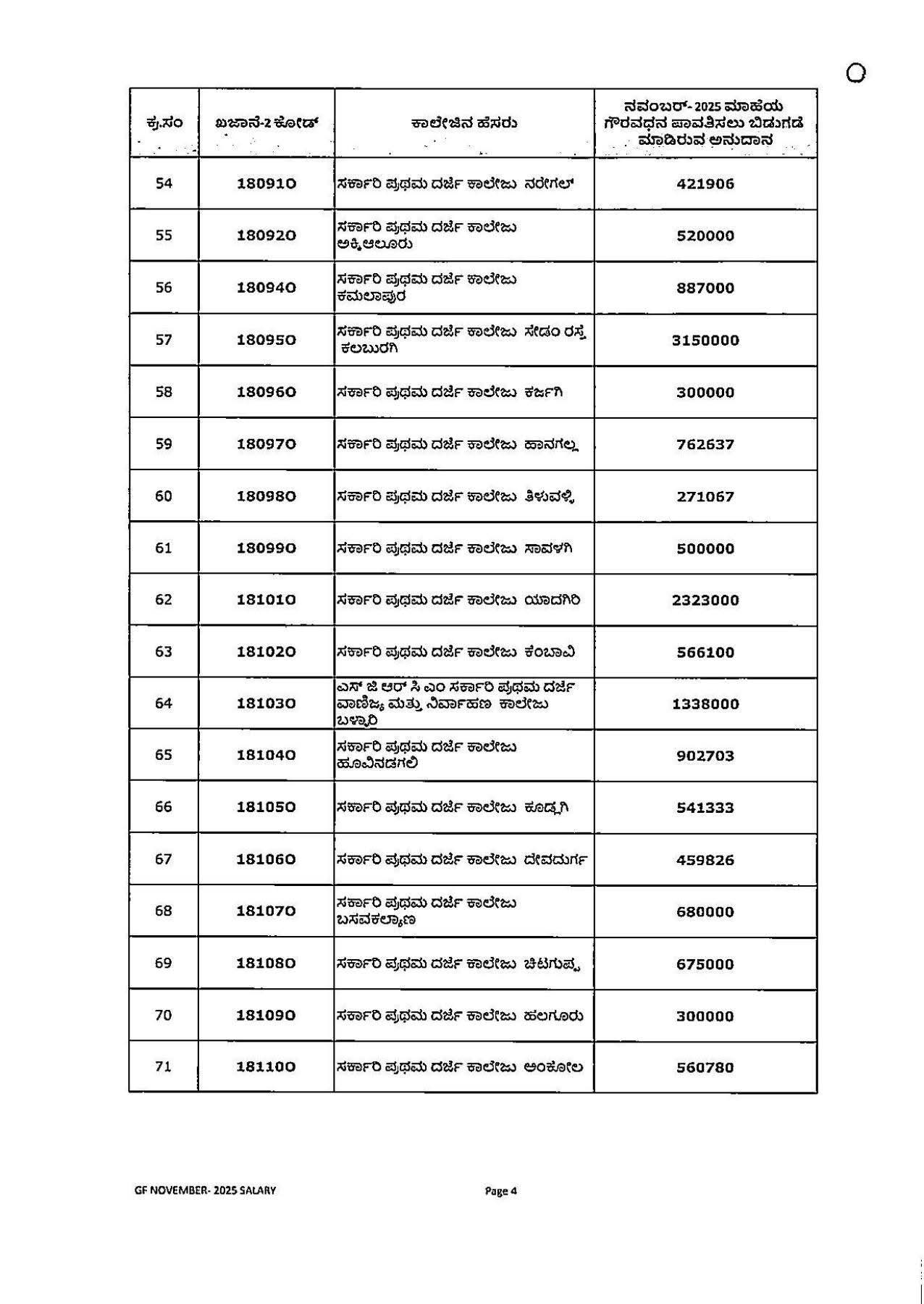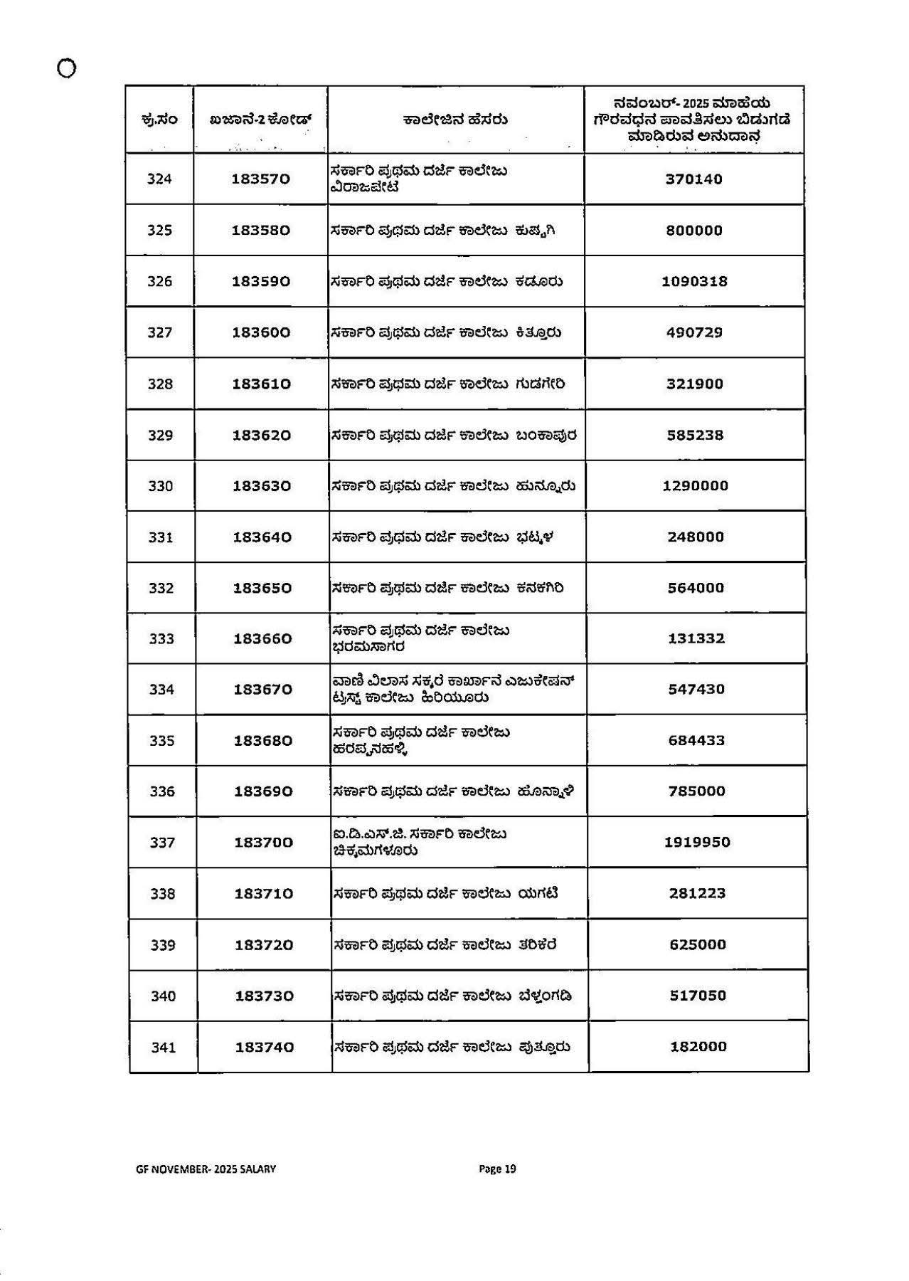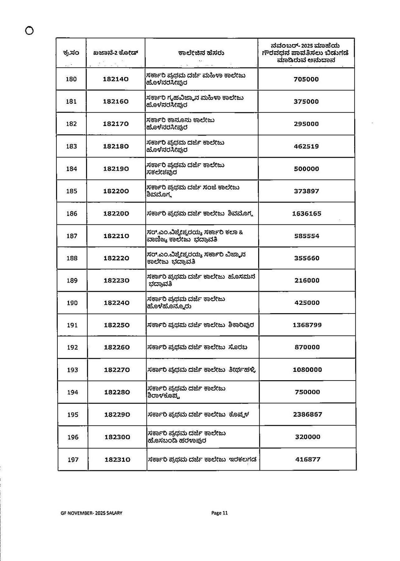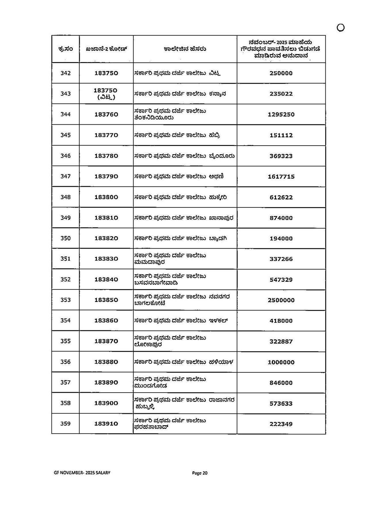 ಇಲಾಖಾ ವ್ಯಾಪ್ತಿಯ ಸರ್ಕಾರಿ ಪ್ರಥಮ ದರ್ಜೆ ಕಾಲೇಜುಗಳಲ್ಲಿ ಕರ್ತವ್ಯ ನಿರ್ವಹಿಸುತ್ತಿರುವ ಅತಿಥಿ ಉಪನ್ಯಾಸಕರುಗಳಿಗೆ ನವಂಬರ್- 2025 ರ ಮಾಹೆಯ ಗೌರವಧನ ಪಾವತಿಸಲು ಅಗತ್ಯ ಇರುವ ಅನುದಾನಕ್ಕಾಗಿ ಬೇಡಿಕೆ ಸಲ್ಲಿಸಲು ಇಲಾಖಾ ವ್ಯಾಪ್ತಿಯ ಎಲ್ಲಾ ಸರ್ಕಾರಿ ಪದವಿ ಕಾಲೇಜುಗಳ ಪ್ರಾಂಶುಪಾಲರುಗಳಿಗೆ ಸೂಚಿಸಲಾಗಿತ್ತು. 436 ಸರ್ಕಾರಿ ಪ್ರಥಮ ದರ್ಜೆ ಕಾಲೇಜುಗಳ ಪ್ರಾಂಶುಪಾಲರುಗಳು ಅನುದಾನಕ್ಕಾಗಿ ಬೇಡಿಕೆ ಸಲ್ಲಿಸಿದ್ದು, ಅದರಂತೆ ಅನುದಾನ ಬಿಡುಗಡೆ ಮಾಡಲು ಈ ಆದೇಶ.