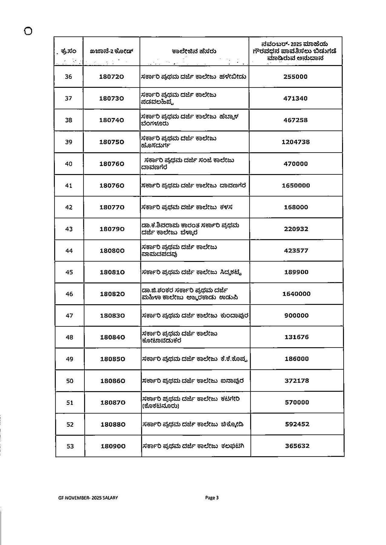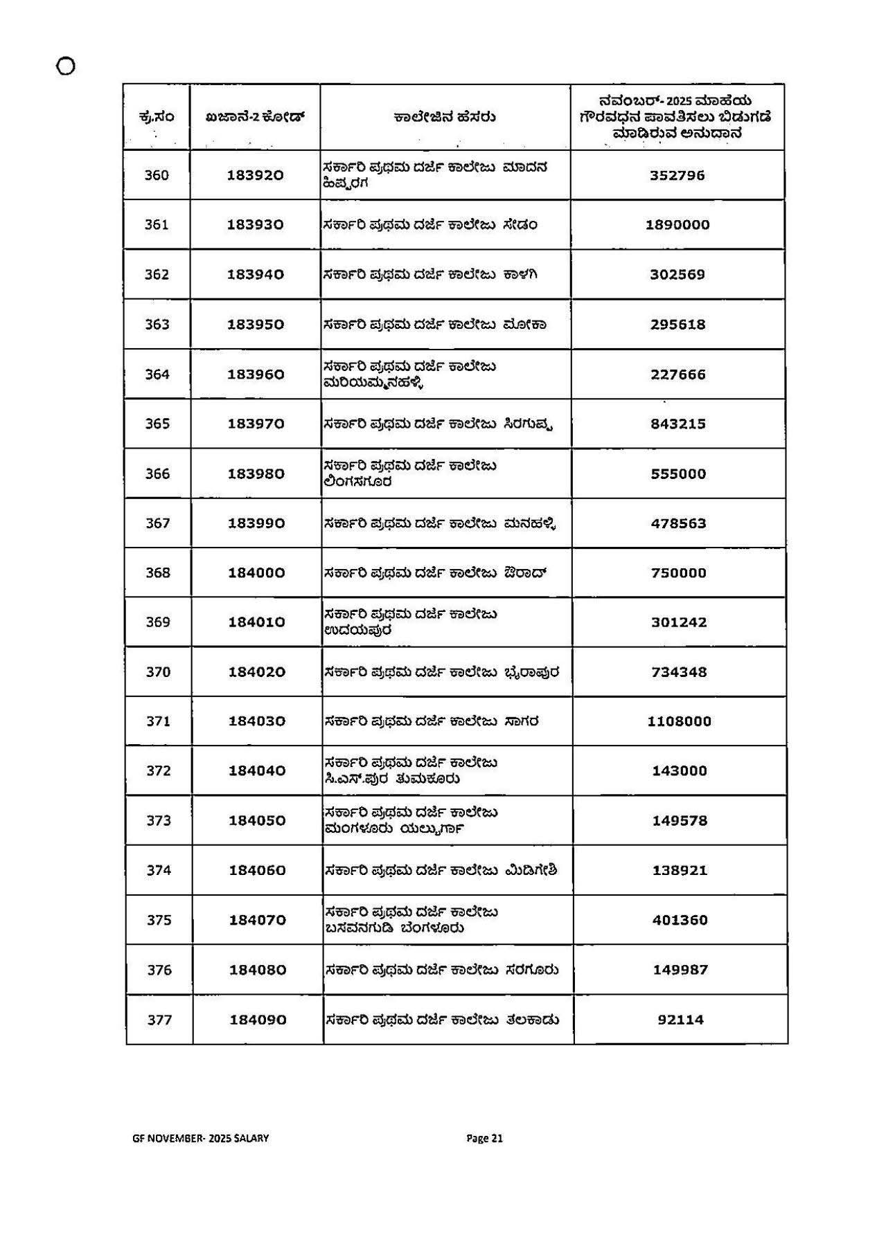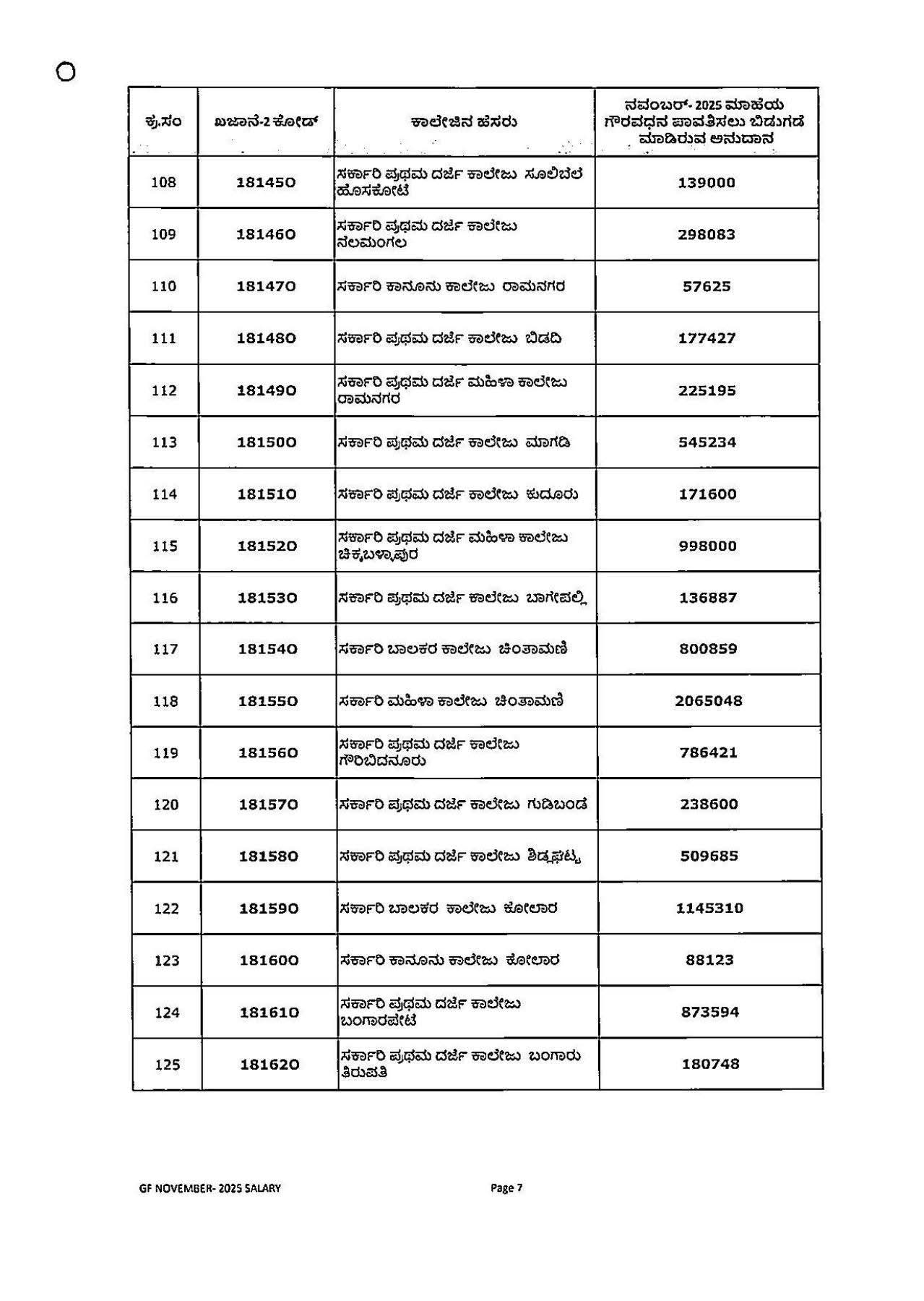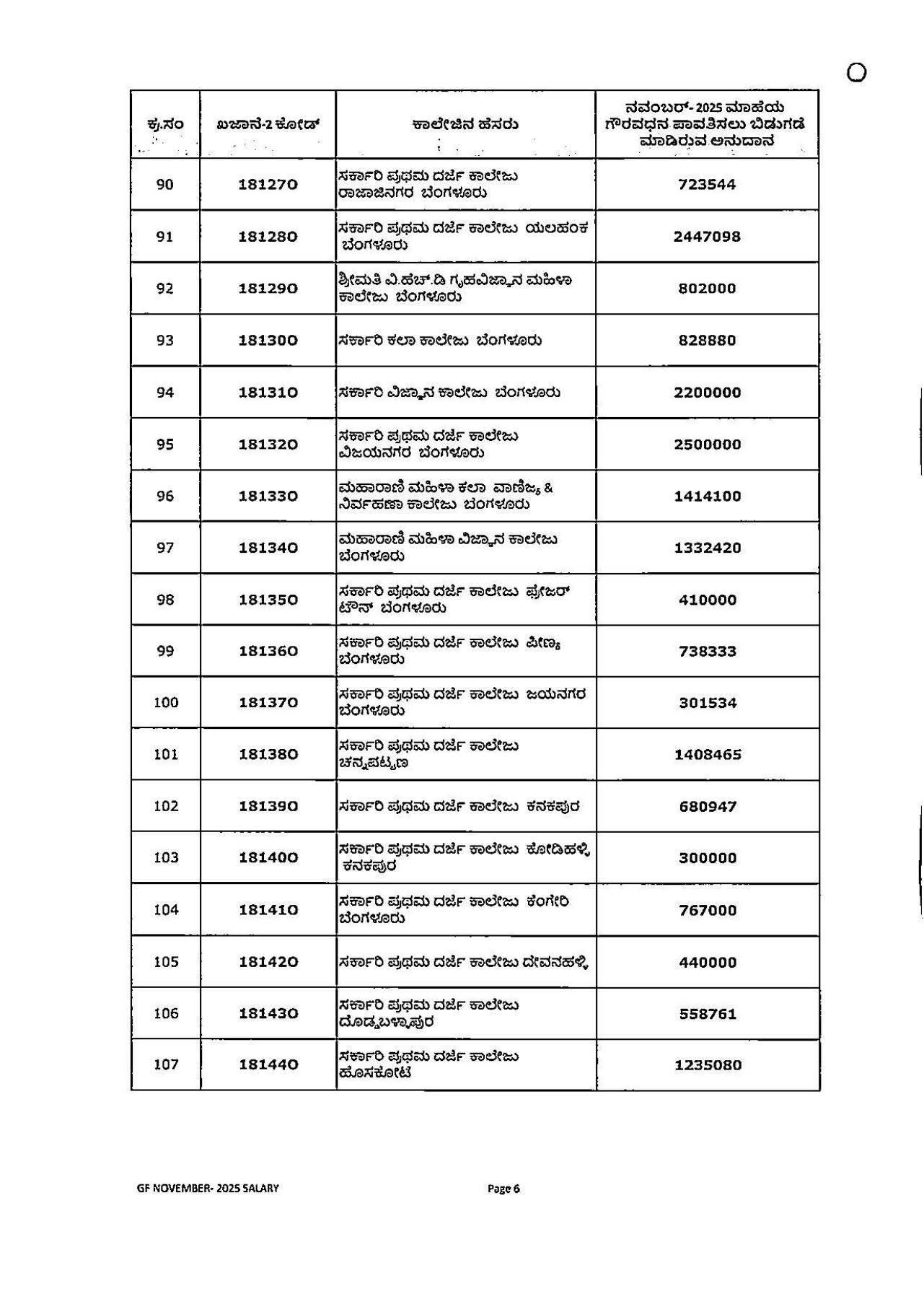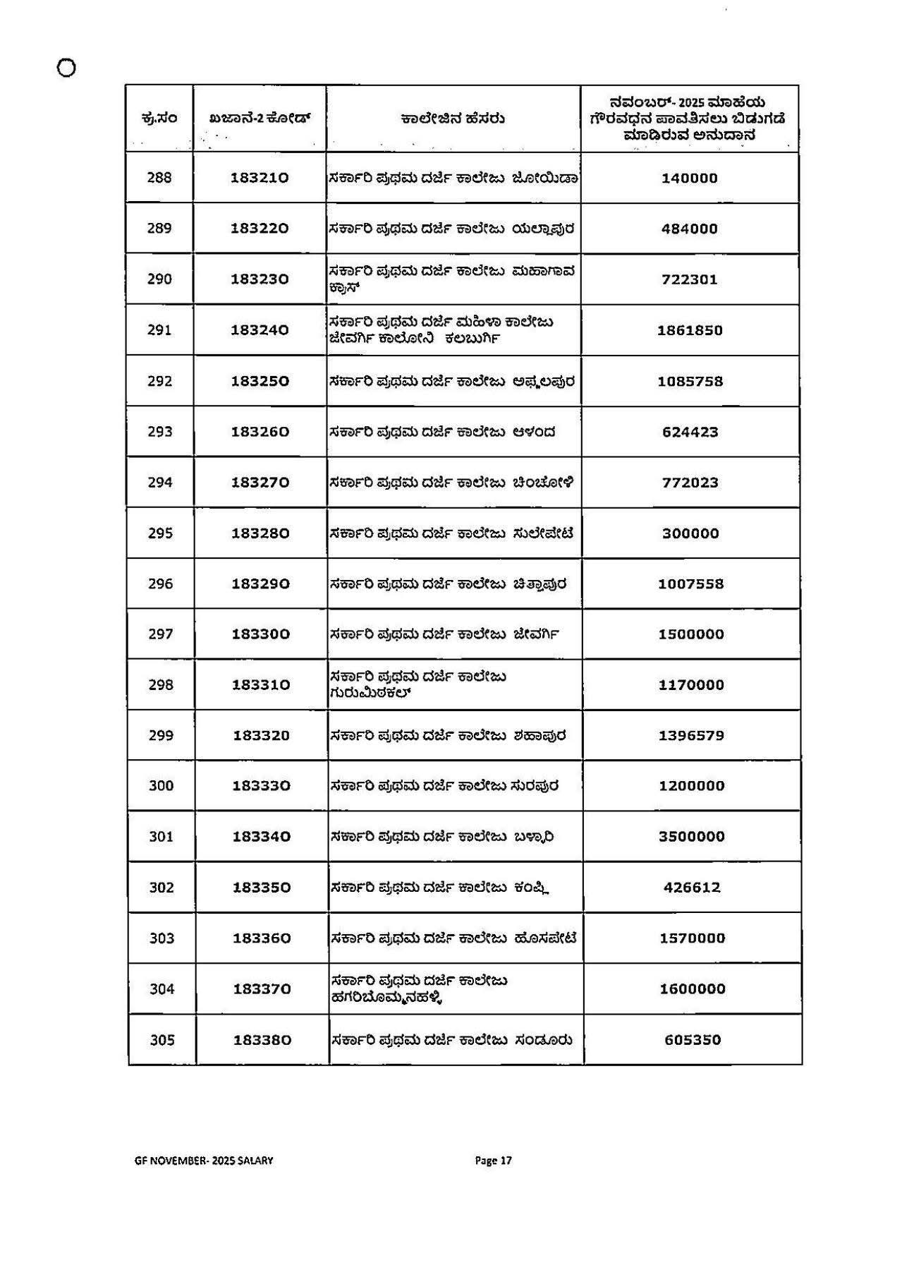 ಇಲಾಖಾ ವ್ಯಾಪ್ತಿಯ ಸರ್ಕಾರಿ ಪ್ರಥಮ ದರ್ಜೆ ಕಾಲೇಜುಗಳಲ್ಲಿ ಕರ್ತವ್ಯ ನಿರ್ವಹಿಸುತ್ತಿರುವ ಅತಿಥಿ ಉಪನ್ಯಾಸಕರುಗಳಿಗೆ ನವಂಬರ್- 2025 ರ ಮಾಹೆಯ ಗೌರವಧನ ಪಾವತಿಸಲು ಅಗತ್ಯ ಇರುವ ಅನುದಾನಕ್ಕಾಗಿ ಬೇಡಿಕೆ ಸಲ್ಲಿಸಲು ಇಲಾಖಾ ವ್ಯಾಪ್ತಿಯ ಎಲ್ಲಾ ಸರ್ಕಾರಿ ಪದವಿ ಕಾಲೇಜುಗಳ ಪ್ರಾಂಶುಪಾಲರುಗಳಿಗೆ ಸೂಚಿಸಲಾಗಿತ್ತು. 436 ಸರ್ಕಾರಿ ಪ್ರಥಮ ದರ್ಜೆ ಕಾಲೇಜುಗಳ ಪ್ರಾಂಶುಪಾಲರುಗಳು ಅನುದಾನಕ್ಕಾಗಿ ಬೇಡಿಕೆ ಸಲ್ಲಿಸಿದ್ದು, ಅದರಂತೆ ಅನುದಾನ ಬಿಡುಗಡೆ ಮಾಡಲು ಈ ಆದೇಶ.