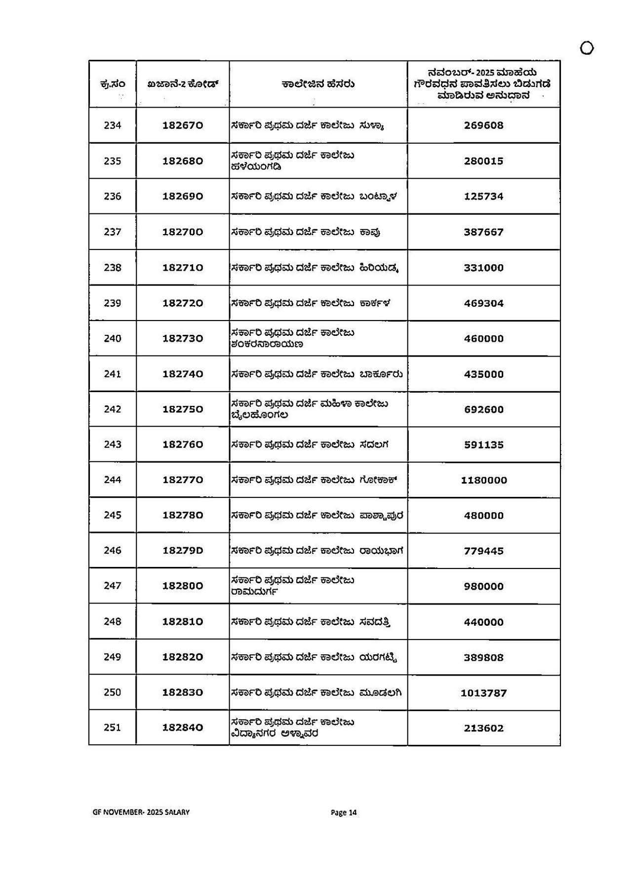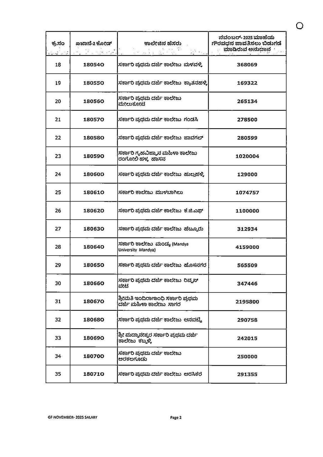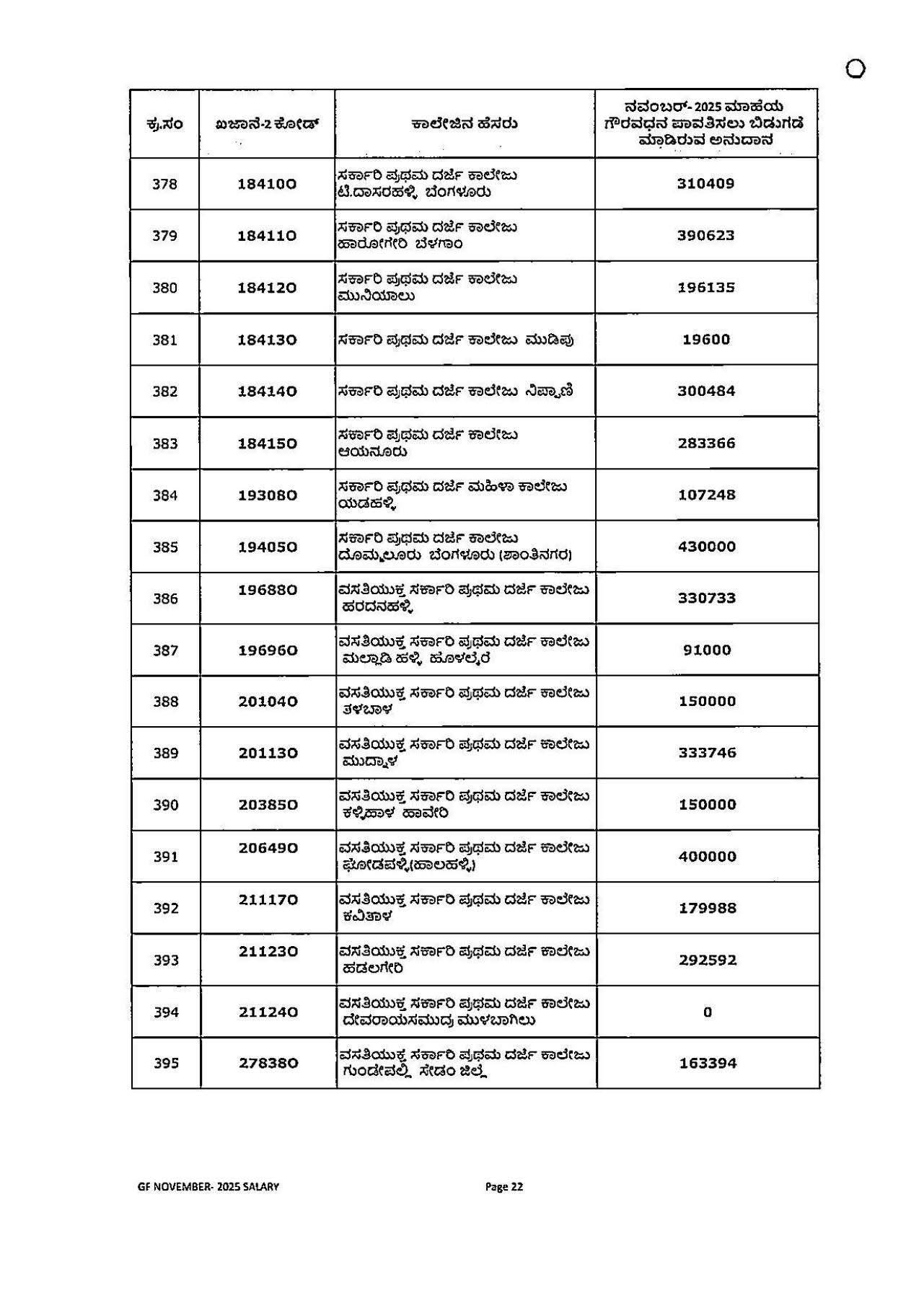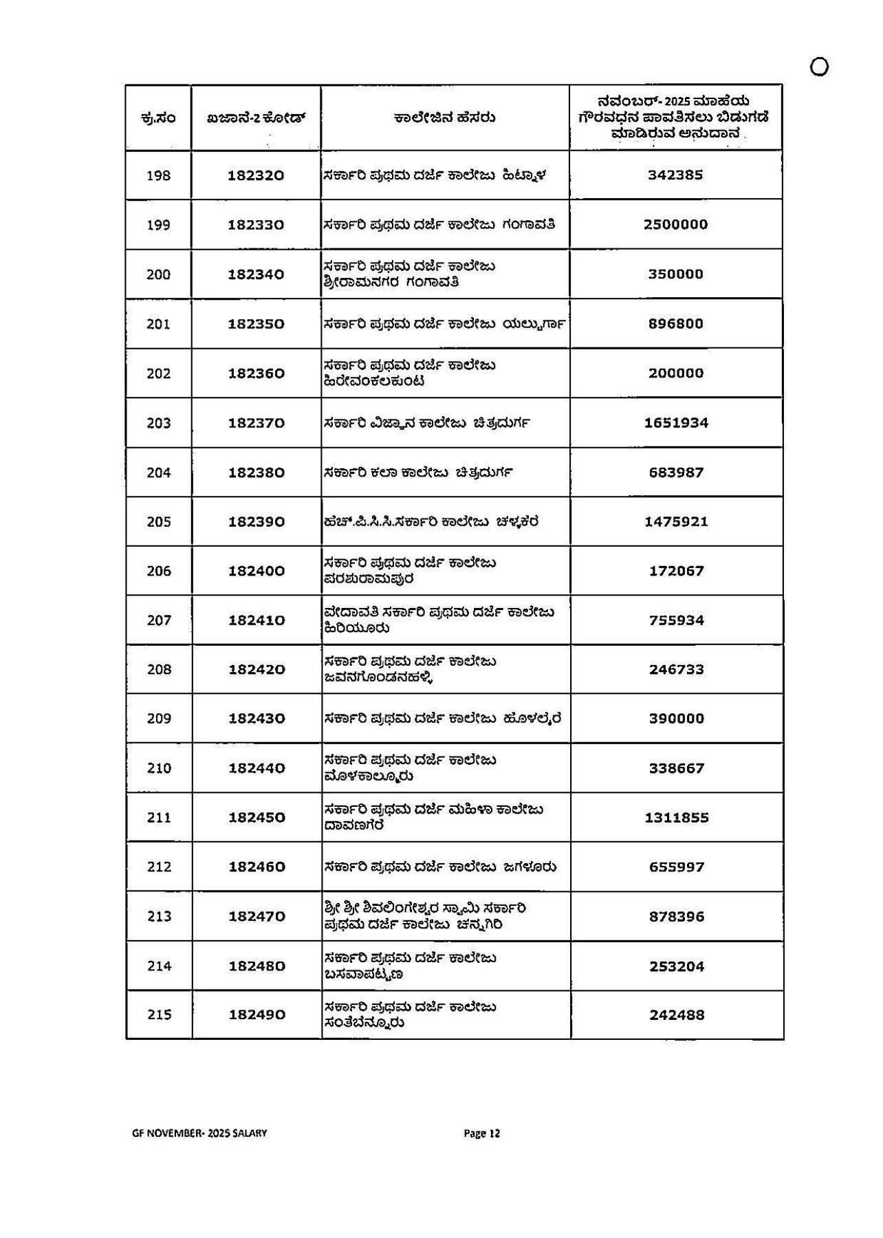 ಇಲಾಖಾ ವ್ಯಾಪ್ತಿಯ ಸರ್ಕಾರಿ ಪ್ರಥಮ ದರ್ಜೆ ಕಾಲೇಜುಗಳಲ್ಲಿ ಕರ್ತವ್ಯ ನಿರ್ವಹಿಸುತ್ತಿರುವ ಅತಿಥಿ ಉಪನ್ಯಾಸಕರುಗಳಿಗೆ ನವಂಬರ್- 2025 ರ ಮಾಹೆಯ ಗೌರವಧನ ಪಾವತಿಸಲು ಅಗತ್ಯ ಇರುವ ಅನುದಾನಕ್ಕಾಗಿ ಬೇಡಿಕೆ ಸಲ್ಲಿಸಲು ಇಲಾಖಾ ವ್ಯಾಪ್ತಿಯ ಎಲ್ಲಾ ಸರ್ಕಾರಿ ಪದವಿ ಕಾಲೇಜುಗಳ ಪ್ರಾಂಶುಪಾಲರುಗಳಿಗೆ ಸೂಚಿಸಲಾಗಿತ್ತು. 436 ಸರ್ಕಾರಿ ಪ್ರಥಮ ದರ್ಜೆ ಕಾಲೇಜುಗಳ ಪ್ರಾಂಶುಪಾಲರುಗಳು ಅನುದಾನಕ್ಕಾಗಿ ಬೇಡಿಕೆ ಸಲ್ಲಿಸಿದ್ದು, ಅದರಂತೆ ಅನುದಾನ ಬಿಡುಗಡೆ ಮಾಡಲು ಈ ಆದೇಶ.