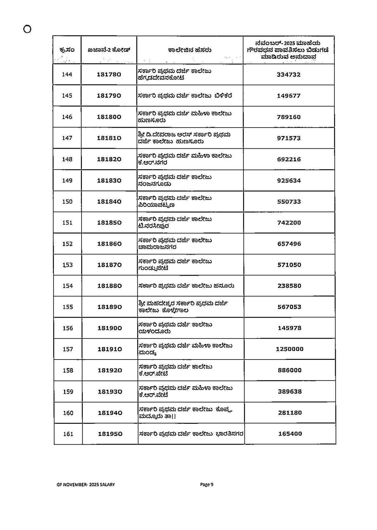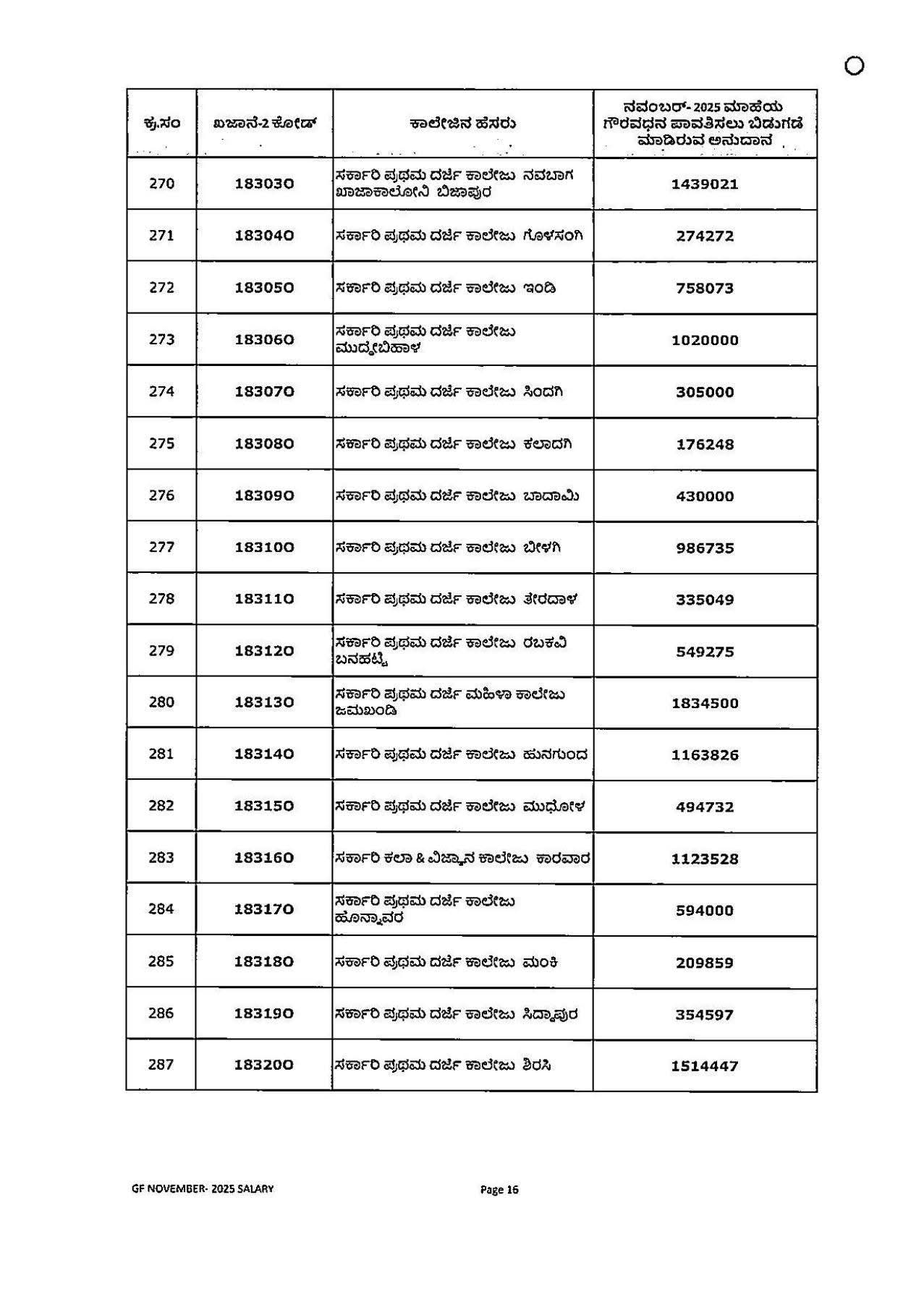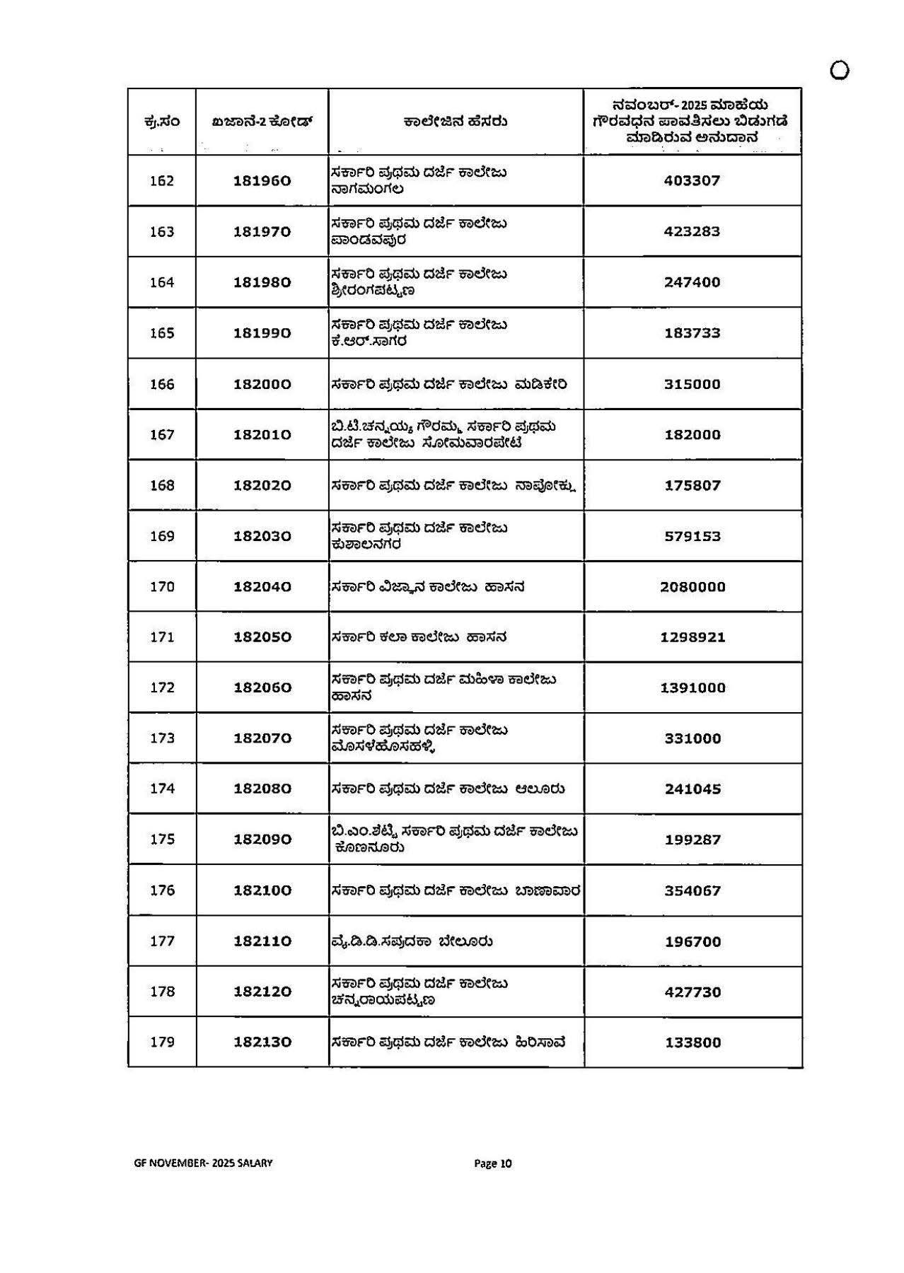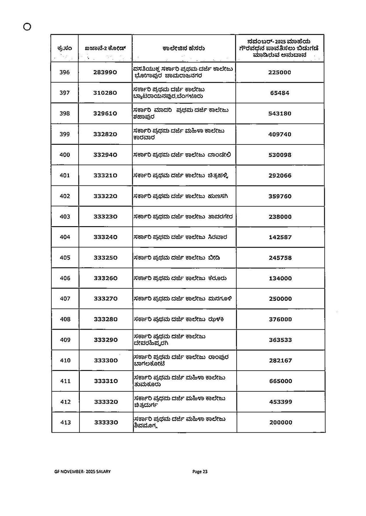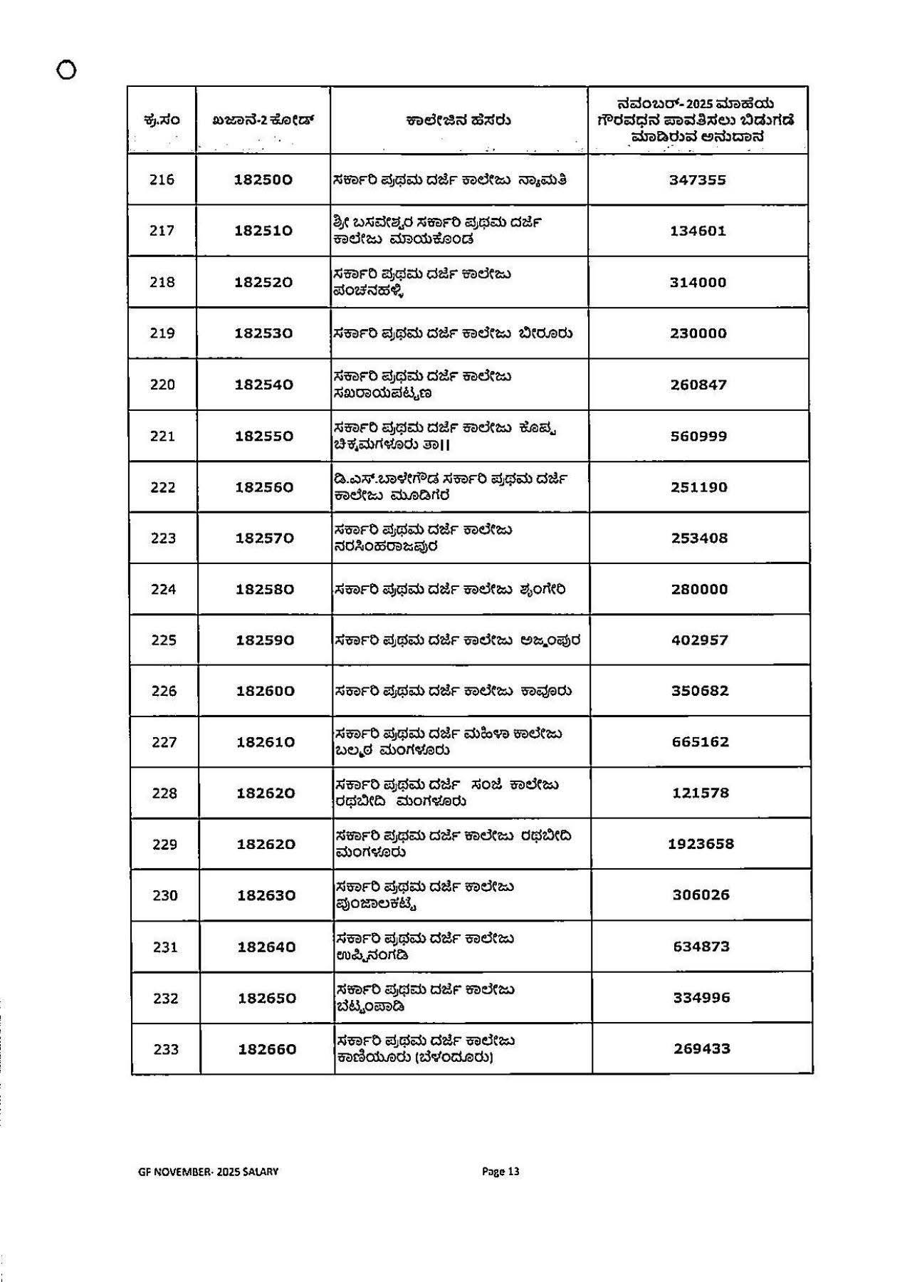 ಇಲಾಖಾ ವ್ಯಾಪ್ತಿಯ ಸರ್ಕಾರಿ ಪ್ರಥಮ ದರ್ಜೆ ಕಾಲೇಜುಗಳಲ್ಲಿ ಕರ್ತವ್ಯ ನಿರ್ವಹಿಸುತ್ತಿರುವ ಅತಿಥಿ ಉಪನ್ಯಾಸಕರುಗಳಿಗೆ ನವಂಬರ್- 2025 ರ ಮಾಹೆಯ ಗೌರವಧನ ಪಾವತಿಸಲು ಅಗತ್ಯ ಇರುವ ಅನುದಾನಕ್ಕಾಗಿ ಬೇಡಿಕೆ ಸಲ್ಲಿಸಲು ಇಲಾಖಾ ವ್ಯಾಪ್ತಿಯ ಎಲ್ಲಾ ಸರ್ಕಾರಿ ಪದವಿ ಕಾಲೇಜುಗಳ ಪ್ರಾಂಶುಪಾಲರುಗಳಿಗೆ ಸೂಚಿಸಲಾಗಿತ್ತು. 436 ಸರ್ಕಾರಿ ಪ್ರಥಮ ದರ್ಜೆ ಕಾಲೇಜುಗಳ ಪ್ರಾಂಶುಪಾಲರುಗಳು ಅನುದಾನಕ್ಕಾಗಿ ಬೇಡಿಕೆ ಸಲ್ಲಿಸಿದ್ದು, ಅದರಂತೆ ಅನುದಾನ ಬಿಡುಗಡೆ ಮಾಡಲು ಈ ಆದೇಶ.