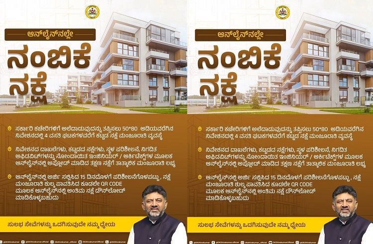 ಈ ಕುರಿತು ಡಿಸಿಎಂ ಡಿ.ಕೆ. ಶಿವಕುಮಾರ್ ಮಾಹಿತಿ ಹಂಚಿಕೊಂಡಿದ್ದು, ಬೆಂಗಳೂರಿನ ಸಾರ್ವಜನಿಕರು ಕಚೇರಿಗಳಿಗೆ ಅಲೆಯುವುದನ್ನು ತಪ್ಪಿಸಲು 50×80 ಅಡಿಯವರೆಗಿನ ನಿವೇಶನಗಳಿಗೆ ಆನ್‌ಲೈನ್ ಮೂಲಕವೇ ತಕ್ಷಣ ನಕ್ಷೆ ಮಂಜೂರಾತಿ ನೀಡುವ ‘ನಂಬಿಕೆ ನಕ್ಷೆ’ ಯೋಜನೆಯನ್ನು ನಮ್ಮ ಸರ್ಕಾರ ಜಾರಿಗೆ ತಂದಿದೆ. ನೋಂದಾಯಿತ ಇಂಜಿನಿಯರ್‌ಗಳ ಮೂಲಕ ದಾಖಲೆಗಳನ್ನು ಅಪ್‌ಲೋಡ್ ಮಾಡಿದ 15 ದಿನದೊಳಗೆ ಪರಿಶೀಲನೆ ಪೂರ್ಣಗೊಂಡು, ಶುಲ್ಕ ಪಾವತಿಸಿದ ಕೂಡಲೇ ಕ್ಯೂಆರ್ ಕೋಡ್ ಸಹಿತ ಅಂತಿಮ ನಕ್ಷೆಯನ್ನು ಡೌನ್‌ಲೋಡ್ ಮಾಡಿಕೊಳ್ಳಬಹುದು.