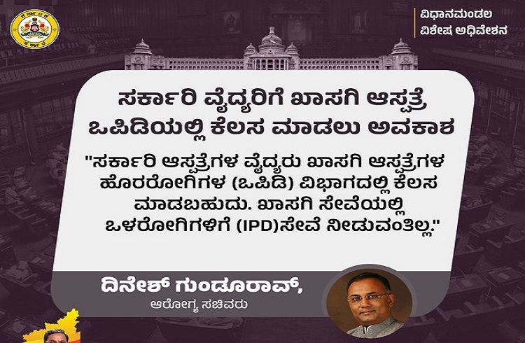 "ಸರ್ಕಾರಿ ಆಸ್ಪತ್ರೆಗಳ ವೈದ್ಯರು ಖಾಸಗಿ ಆಸ್ಪತ್ರೆಗಳ ಹೊರರೋಗಿಗಳ (ಒಪಿಡಿ) ವಿಭಾಗದಲ್ಲಿ ಕೆಲಸ ಮಾಡಬಹುದು. ಖಾಸಗಿ ಸೇವೆಯಲ್ಲಿ ಒಳರೋಗಿಗಳಿಗೆ (IPD)ಸೇವೆ ನೀಡುವಂತಿಲ್ಲ."