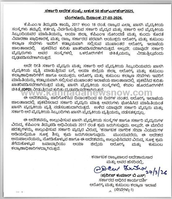 ಸರ್ಕಾರಿ ವೈದ್ಯರಿಗೆ ಕಡ್ಡಾಯ ಸೂಚನೆ: