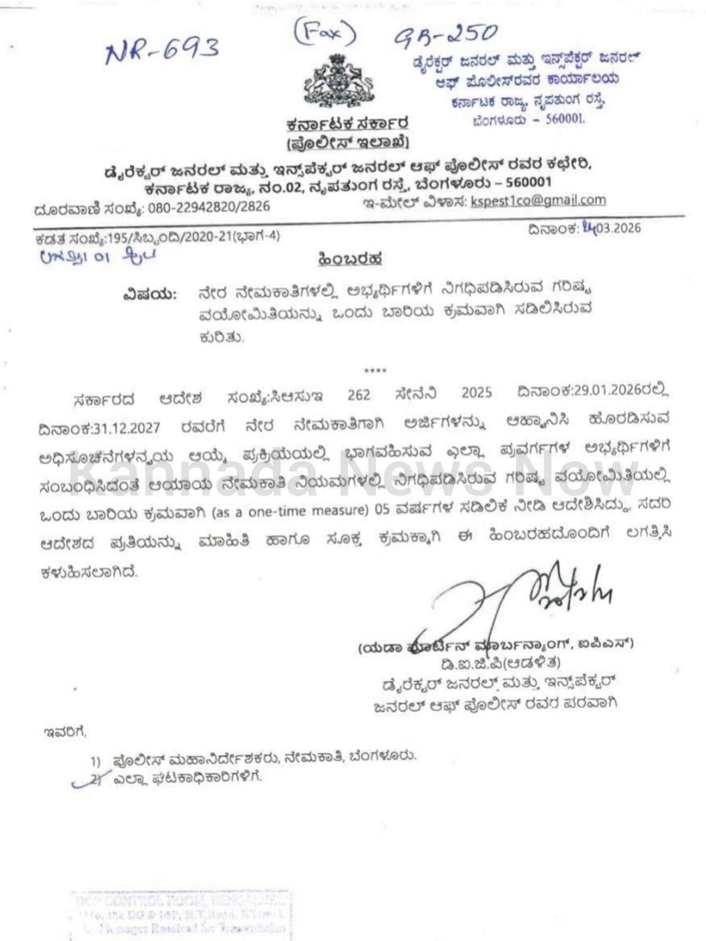 • ​ಅವಧಿಯ ಮಿತಿ: ಈ ಸವಲತ್ತು ದಿನಾಂಕ 31.12.2027 ರವರೆಗೆ ಹೊರಡಿಸಲಾಗುವ ಎಲ್ಲಾ ನೇರ ನೇಮಕಾತಿ ಅಧಿಸೂಚನೆಗಳಿಗೆ ಅನ್ವಯಿಸುತ್ತದೆ.