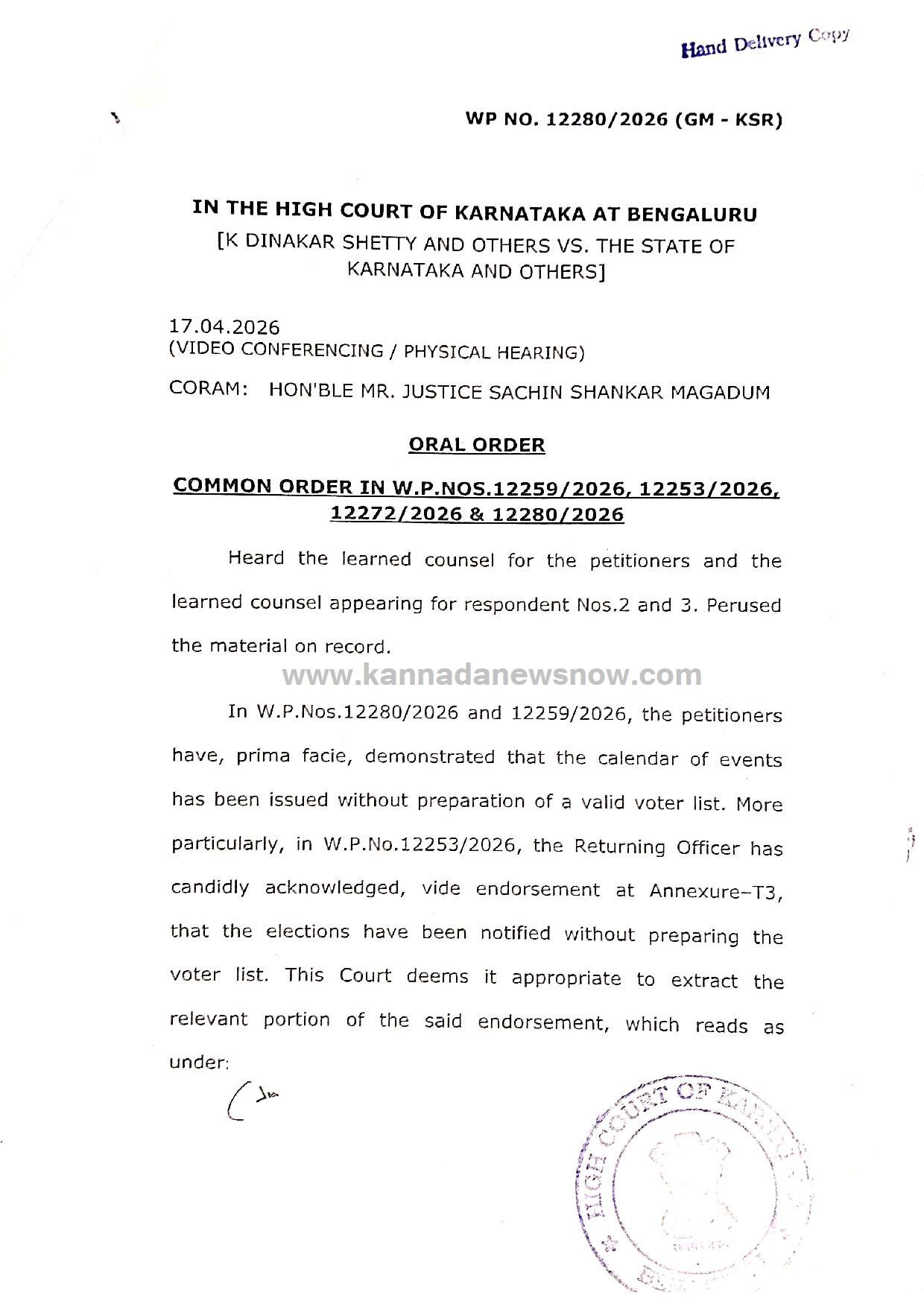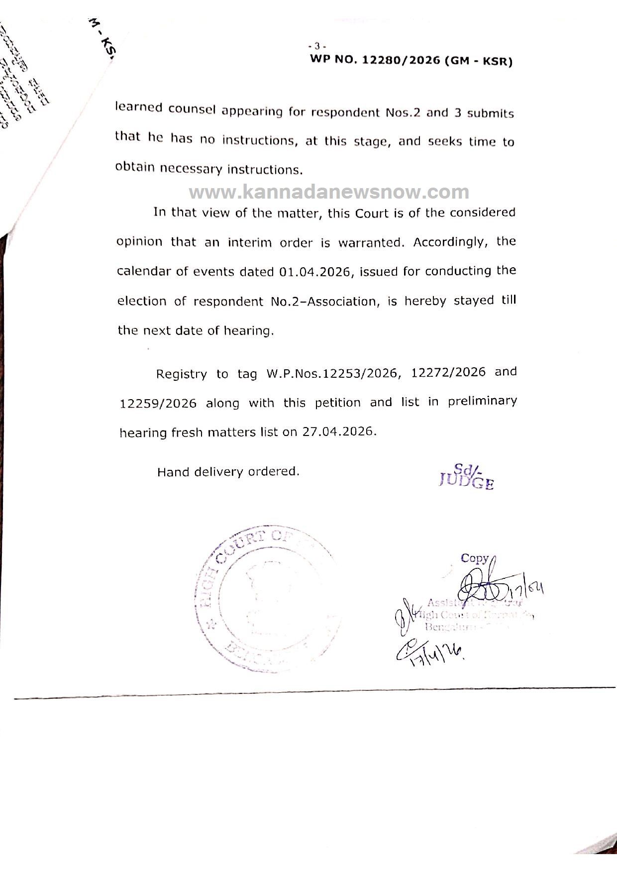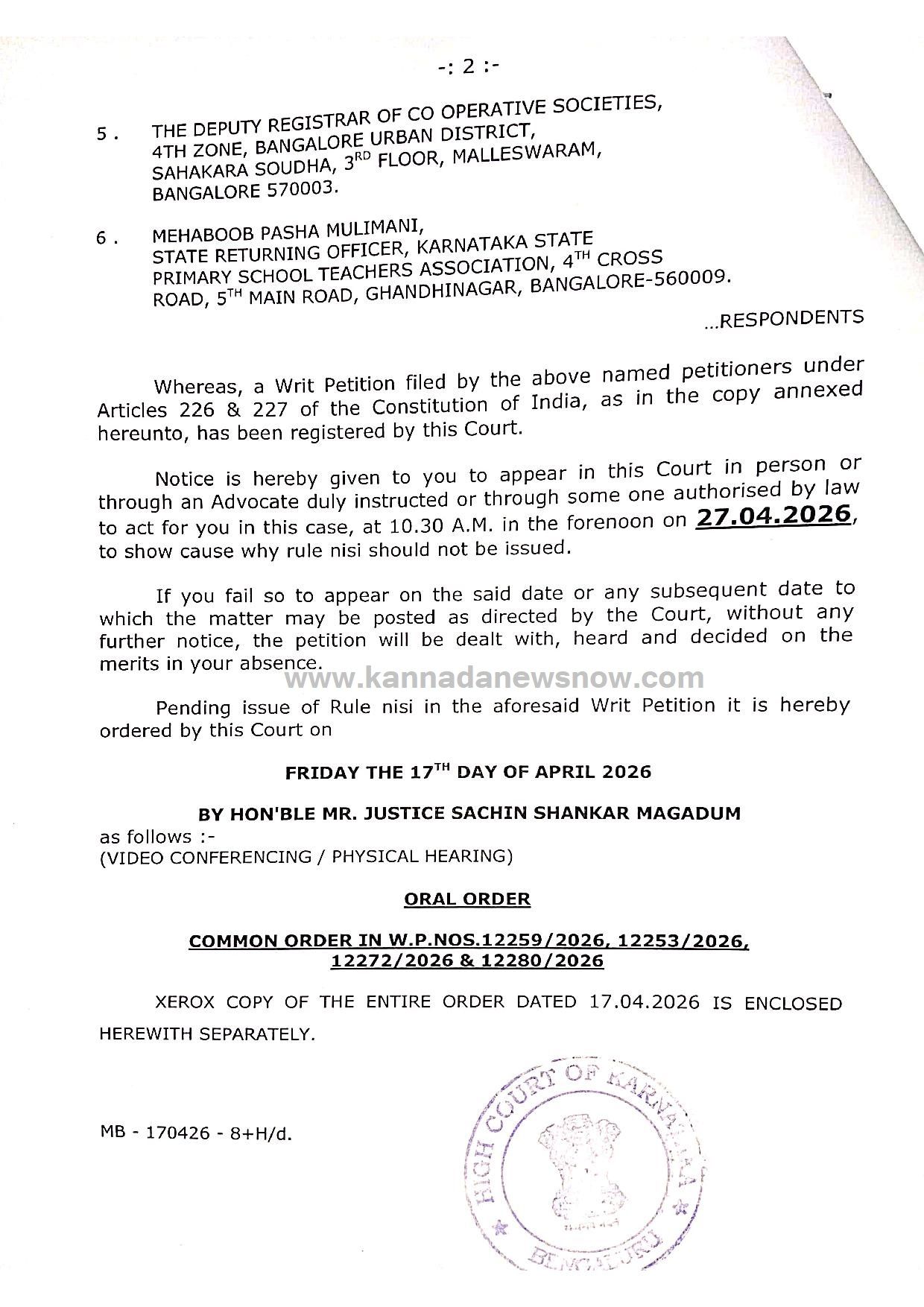 ಮುಂದಿನ ವಿಚಾರಣೆ: ಈ ಪ್ರಕರಣದ ಮುಂದಿನ ವಿಚಾರಣೆಯನ್ನು 27.04.2026 ಕ್ಕೆ ನಿಗದಿಪಡಿಸಲಾಗಿದೆ.