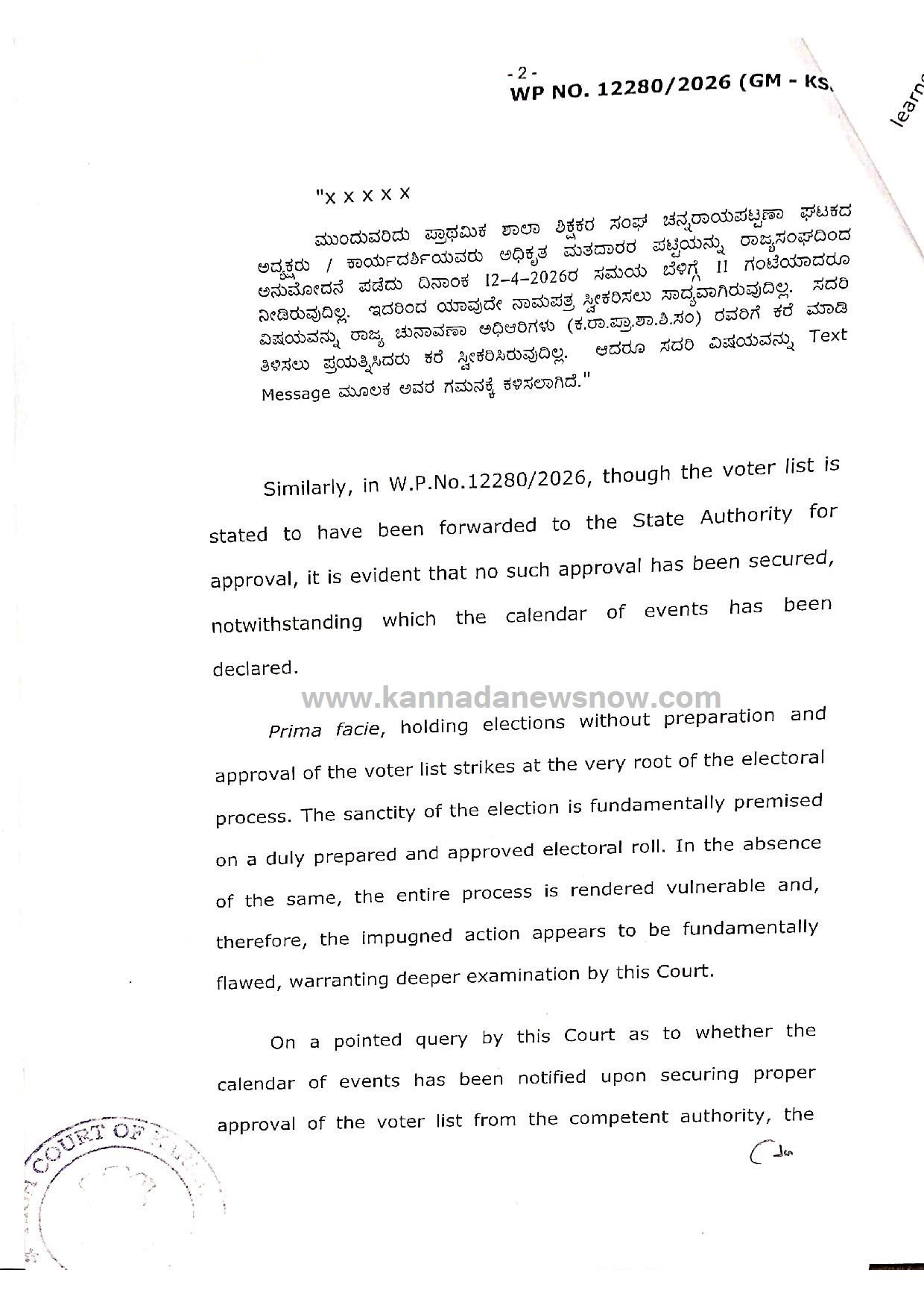 ಚನ್ನರಾಯಪಟ್ಟಣ ಘಟಕದ ಉದಾಹರಣೆ: ಚನ್ನರಾಯಪಟ್ಟಣ ಘಟಕದ ಚುನಾವಣಾಧಿಕಾರಿಯೊಬ್ಬರು ರಾಜ್ಯ ಸಂಘದಿಂದ ಮತದಾರರ ಪಟ್ಟಿ ಬರದ ಕಾರಣ ನಾಮಪತ್ರ ಸ್ವೀಕರಿಸಲು ಸಾಧ್ಯವಾಗುತ್ತಿಲ್ಲ ಎಂದು ತಿಳಿಸಿರುವ ಪತ್ರವನ್ನು ನ್ಯಾಯಾಲಯವು ಗಮನಿಸಿದೆ.