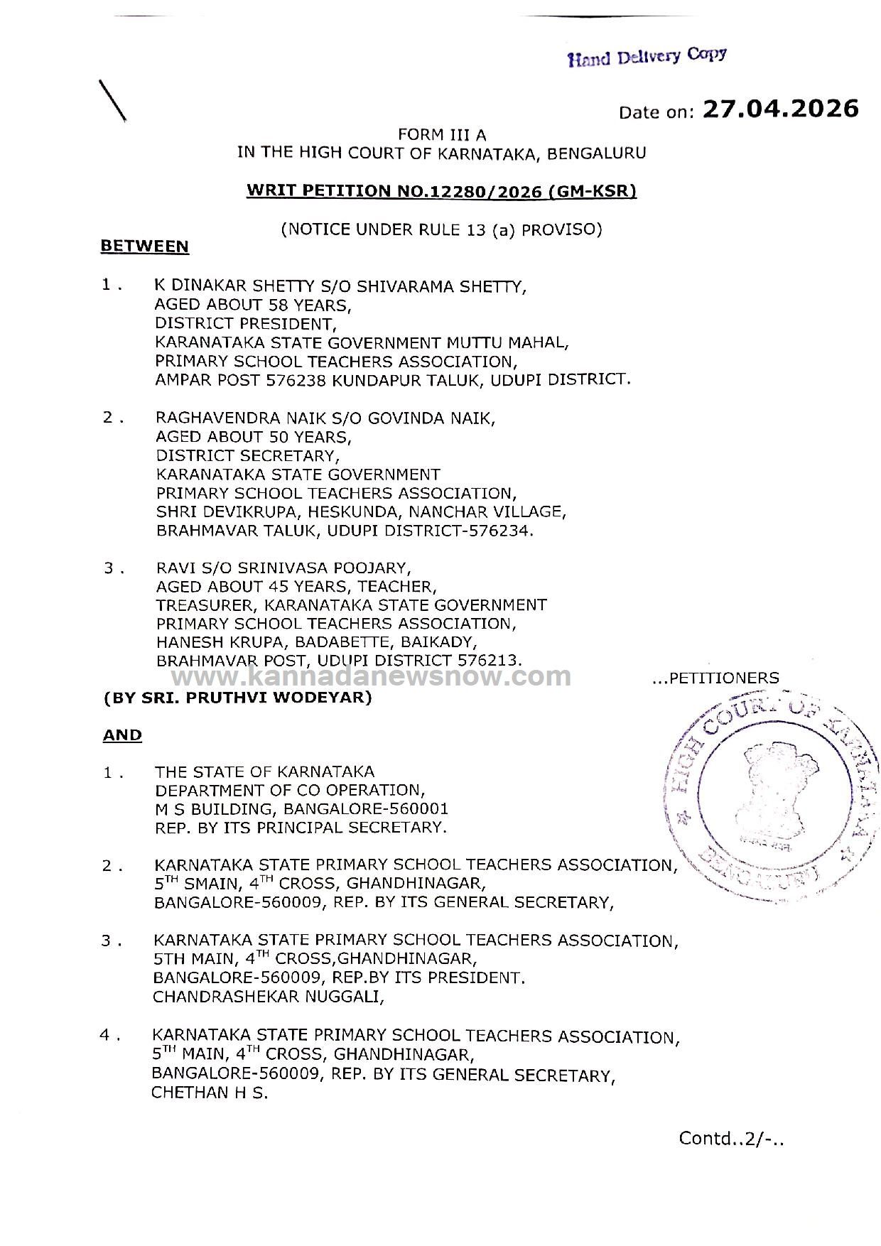 ಮಧ್ಯಂತರ ತಡೆ: ದಿನಾಂಕ 01.04.2026 ರಂದು ಹೊರಡಿಸಲಾಗಿದ್ದ ಶಿಕ್ಷಕರ ಸಂಘದ ಚುನಾವಣಾ ವೇಳಾಪಟ್ಟಿಗೆ (Calendar of Events) ಮುಂದಿನ ವಿಚಾರಣೆಯವರೆಗೆ ತಡೆ ನೀಡಲಾಗಿದೆ.