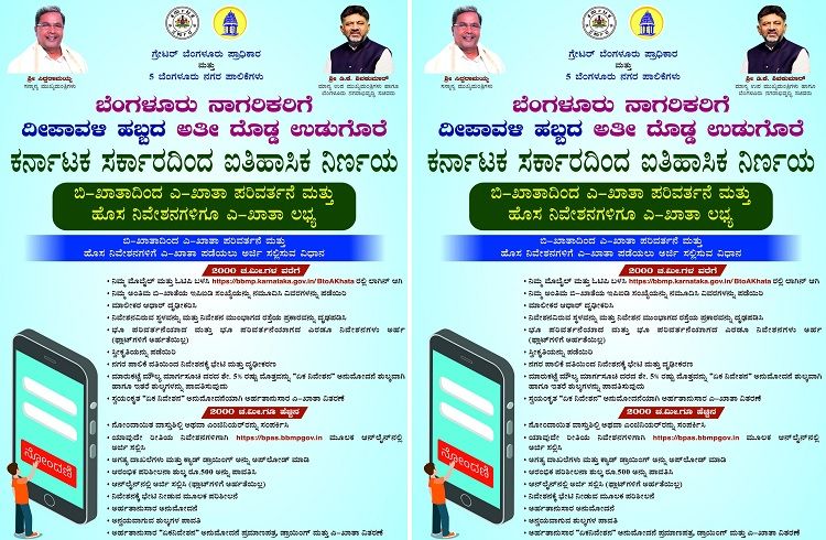 ಗ್ರೇಟರ್ ಬೆಂಗಳೂರು ಪ್ರಾಧಿಕಾರ ವ್ಯಾಪ್ತಿಯ ಬಿ-ಖಾತಾ ನಿವೇಶನ ಮಾಲೀಕರಿಗೆ ಬಿ-ಖಾತಾದಿಂದ ಎ-ಖಾತಾಗೆ ಪರಿವರ್ತನೆ ಮತ್ತು ಹೊಸ ನಿವೇಶನಗಳಿಗೂ ಎ-ಖಾತಾ ನೀಡಲು ಹೊಸದಾಗಿ ಜಾರಿಗೊಳಿಸಿರುವ ಆನ್‌ಲೈನ್ ವ್ಯವಸ್ಥೆಗೆ ಇಂದು ಚಾಲನೆ ದೊರೆತಿದೆ.