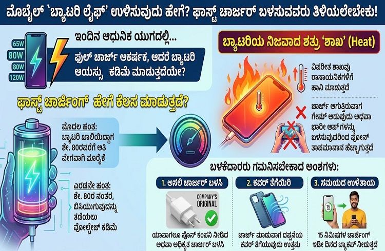 ಮೊಬೈಲ್ `ಬ್ಯಾಟರಿ ಲೈಫ್’ ಉಳಿಸುವುದು ಹೇಗೆ? ಫಾಸ್ಟ್ ಚಾರ್ಜರ್ ಬಳಸುವವರು ತಿಳಿಯಲೇಬೇಕು!