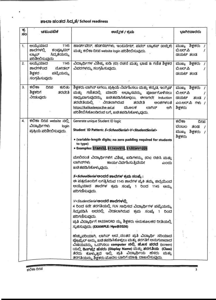 ಪ್ರತಿ ವಿದ್ಯಾರ್ಥಿಗೆ ವಾರದಲ್ಲಿ 3 ದಿನ ಈ ತಂತ್ರಾಂಶದ ಮೂಲಕ ಕಲಿಯಲು ಅವಕಾಶ ನೀಡಬೇಕು.