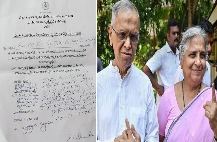 ಇನ್ಫೋಸಿಸ್ ಸಂಸ್ಥಾಪಕ ನಾರಾಯಣ ಮೂರ್ತಿ ಮತ್ತು ಅವರ ಪತ್ನಿ, ಲೇಖಕಿ ಸುಧಾ ಮೂರ್ತಿ, ಕರ್ನಾಟಕ ರಾಜ್ಯ ಹಿಂದುಳಿದ ವರ್ಗಗಳ ಆಯೋಗವು ನಡೆಸುತ್ತಿರುವ ಸಾಮಾಜಿಕ ಮತ್ತು ಶೈಕ್ಷಣಿಕ ಸಮೀಕ್ಷೆಯಲ್ಲಿ ಭಾಗವಹಿಸದಿರಲು ನಿರ್ಧರಿಸಿದ್ದಾರೆ. ಗಣತಿದಾರರು ತಮ್ಮ ಮನೆಗೆ ಭೇಟಿ ನೀಡಿದಾಗ, ದಂಪತಿಗಳು “ನಮ್ಮ ಮನೆಯಲ್ಲಿ ಸಮೀಕ್ಷೆ ನಡೆಸುವುದು ನಮಗೆ ಇಷ್ಟವಿಲ್ಲ” ಎಂದು ಹೇಳಿದ್ದರು ಎಂದು ಅಧಿಕಾರಿಗಳು ತಿಳಿಸಿದ್ದಾರೆ.