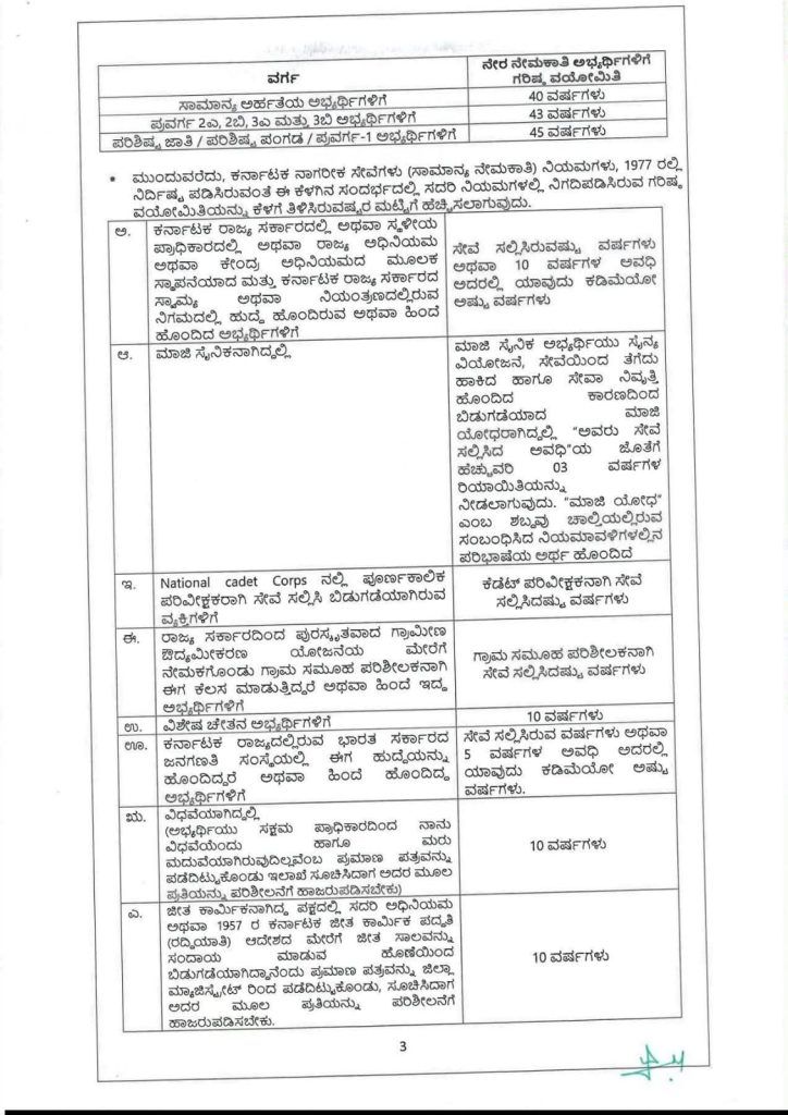 ಪರಿಶಿಷ್ಟ ಜಾತಿ/ಪರಿಶಿಷ್ಟ ಪಂಗಡ/ಪ್ರವರ್ಗ-1: 45 ವರ್ಷ
