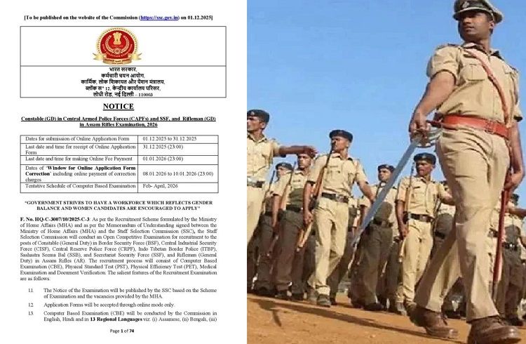 ಎಲ್ಲಾ ಹುದ್ದೆಗಳು ರೂ. 21,700 ರಿಂದ ರೂ. 69,100 ವರೆಗಿನ ಲೆವೆಲ್-3 ವೇತನ ಶ್ರೇಣಿಯನ್ನು ನೀಡುತ್ತವೆ. ಮಾನ್ಯತೆ ಪಡೆದ ಮಂಡಳಿಯಿಂದ 10 ನೇ ತರಗತಿ ಉತ್ತೀರ್ಣರಾದ ಅಭ್ಯರ್ಥಿಗಳು ಅಧಿಕೃತ ವೆಬ್ಸೈಟ್ ssc.gov.in ಮೂಲಕ ಅರ್ಜಿ ಸಲ್ಲಿಸಬಹುದು. ಈ ಹುದ್ದೆಗಳಿಗೆ ಪರೀಕ್ಷೆಯನ್ನು ಫೆಬ್ರವರಿ ಮತ್ತು ಏಪ್ರಿಲ್ 2026 ರ ನಡುವೆ ನಡೆಸಲು ತಾತ್ಕಾಲಿಕವಾಗಿ ನಿರ್ಧರಿಸಲಾಗಿದೆ.