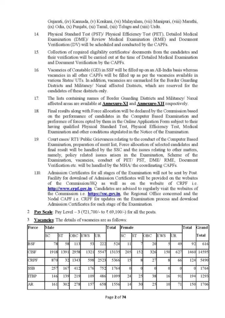ಆಯ್ಕೆಯಾದ ಅಭ್ಯರ್ಥಿಗಳಿಗೆ ಗಡಿ ಭದ್ರತಾ ಪಡೆ (ಬಿಎಸ್ಎಫ್), ಕೇಂದ್ರ ಕೈಗಾರಿಕಾ ಭದ್ರತಾ ಪಡೆ (ಸಿಐಎಸ್ಎಫ್), ಕೇಂದ್ರ ಮೀಸಲು ಪೊಲೀಸ್ ಪಡೆ (ಸಿಆರ್ಪಿಎಫ್), ಸಶಸ್ತ್ರ ಸೀಮಾ ಬಲ (ಎಸ್ಎಸ್ಬಿ), ಇಂಡೋ-ಟಿಬೆಟಿಯನ್ ಗಡಿ ಪೊಲೀಸ್ (ಐಟಿಬಿಪಿ), ಅಸ್ಸಾಂ ರೈಫಲ್ಸ್ (ಎಆರ್) ಮತ್ತು ಸೆಕ್ರೆಟರಿಯೇಟ್ ಭದ್ರತಾ ಪಡೆ (ಎಸ್ಎಸ್ಎಫ್)ಗಳಲ್ಲಿ ಹುದ್ದೆಗಳನ್ನು ನೀಡಲಾಗುವುದು.
