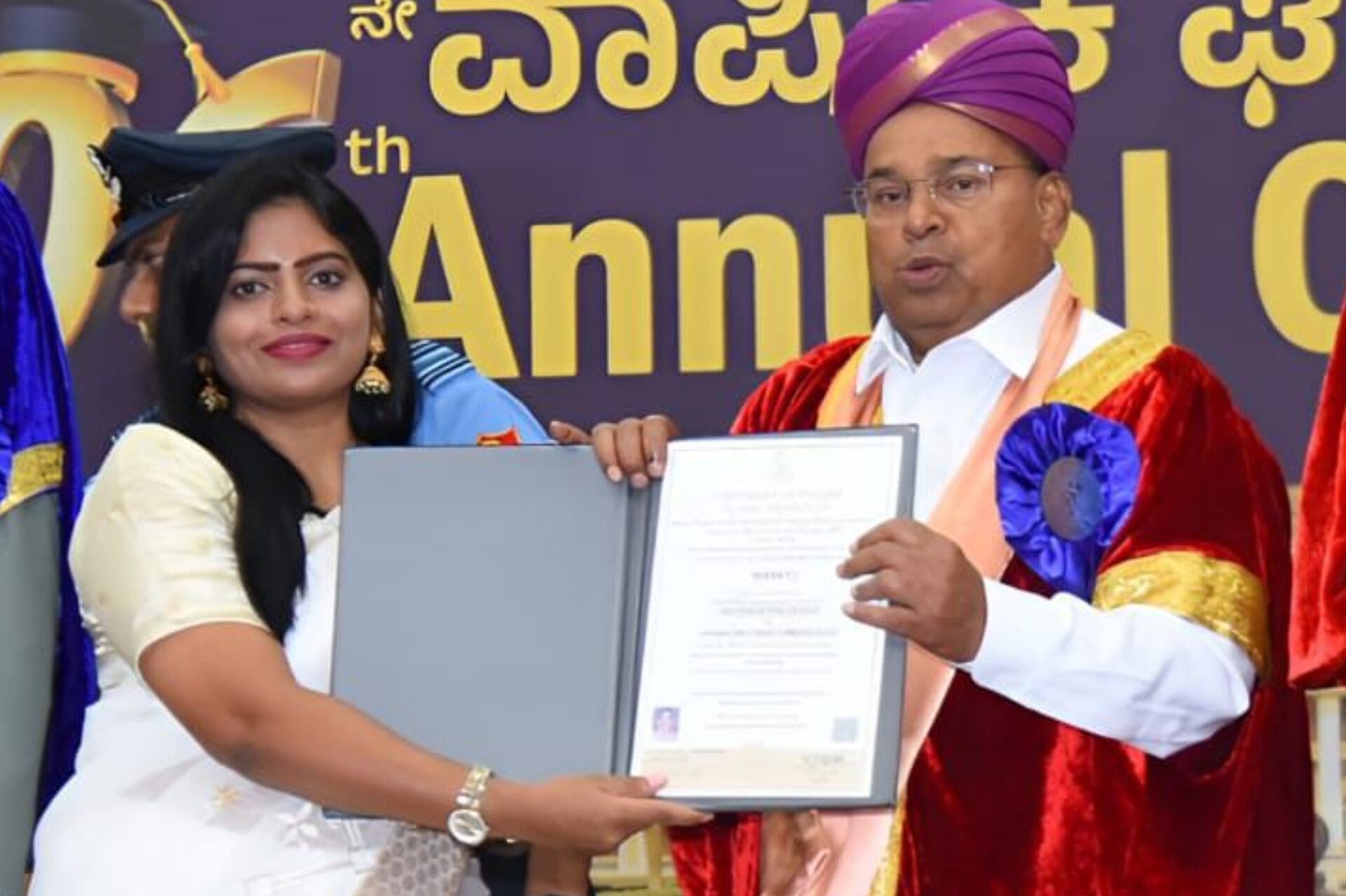 ಮೈಸೂರು ವಿಶ್ವವಿದ್ಯಾಲಯದಲ್ಲಿ ಸೋಮವಾರ ನಡೆದ 106ನೇ ಘಟಿಕೋತ್ಸವದಲ್ಲಿ ಕುಲಾಧಿಪತಿಗಳಾದ ರಾಜ್ಯಪಾಲ ಥಾವರ್ ಚಂದ್ ಗೆಹ್ಲೋಟ್ ಹಾಗೂ ಉನ್ನತ ಶಿಕ್ಷಣ ಸಚಿವರಾದ ಡಾ. ಎಂ.ಸಿ ಸುಧಾಕರ್ ಪಿ.ಹೆಚ್ ಡಿ ಪದವಿ ಪ್ರದಾನ ಮಾಡಿದರು.