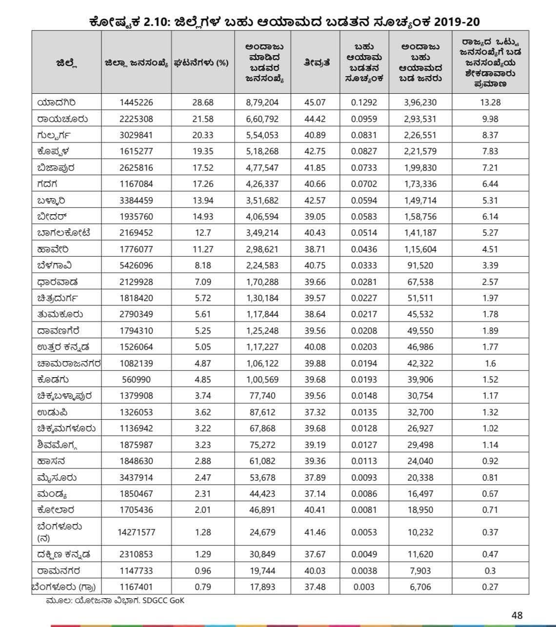 ಅಂಕಿ-ಅಂಶಗಳ ಪ್ರಕಾರ, ಅತಿ ಹೆಚ್ಚು ಬಡತನದ ಸೂಚ್ಯಂಕ ಹೊಂದಿರುವ ಜಿಲ್ಲೆಗಳು ಇಲ್ಲಿವೆ: