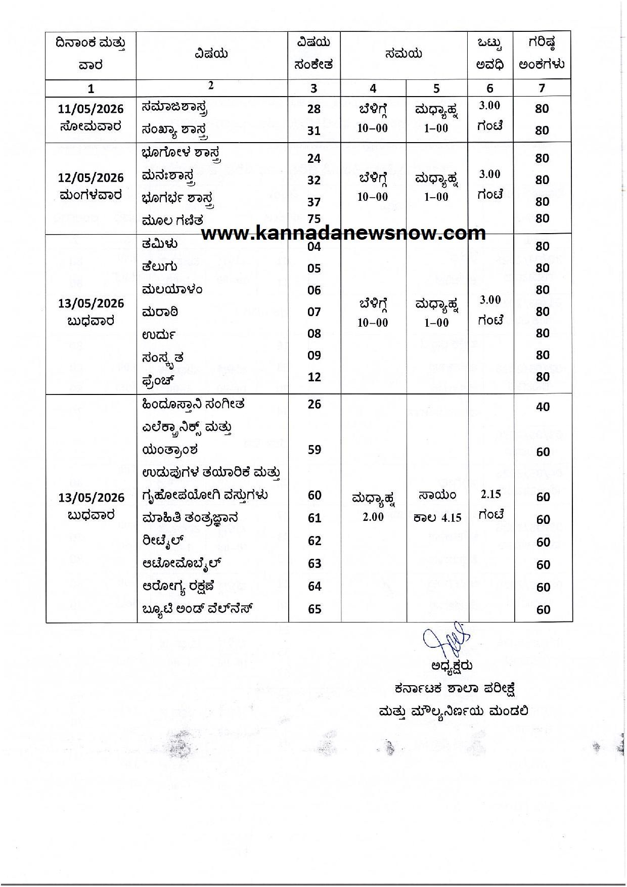 ಪರೀಕ್ಷೆ ಮುಕ್ತಾಯ: 13/05/2026 (ಬುಧವಾರ).