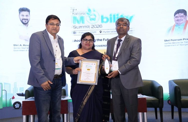 ದಿನಾಂಕ 17/03/2026 ರಂದು ಹೈದರಾಬಾದ್ನ ನೊವೊಟೆಲ್ ಹೋಟೆಲ್ನಲ್ಲಿ ನಡೆದ ಸಮಾರಂಭದಲ್ಲಿ, ಕೆಎಸ್ಆರ್ಟಿಸಿ ನಿರ್ದೇಶಕಿ (ಸಿ ಮತ್ತು ಜಾ) ಗಾಯಿತ್ರಿ ಕೆ.ಎಂ. ಅವರು ತೆಲಂಗಾಣ ಸರ್ಕಾರದ ಸಾರಿಗೆ ಆಯುಕ್ತರಾದ ಕೆ. ಇಳಂಬರಿತಿ ಮತ್ತು ಎಲೆಟ್ಸ್ ಟೆಕ್ನೋಮೀಡಿಯಾದ ಸಿಇಒ ಡಾ. ರವಿ ಗುಪ್ತಾ ಅವರಿಂದ ಪ್ರಶಸ್ತಿಗಳನ್ನು ಸ್ವೀಕರಿಸಿದರು.
