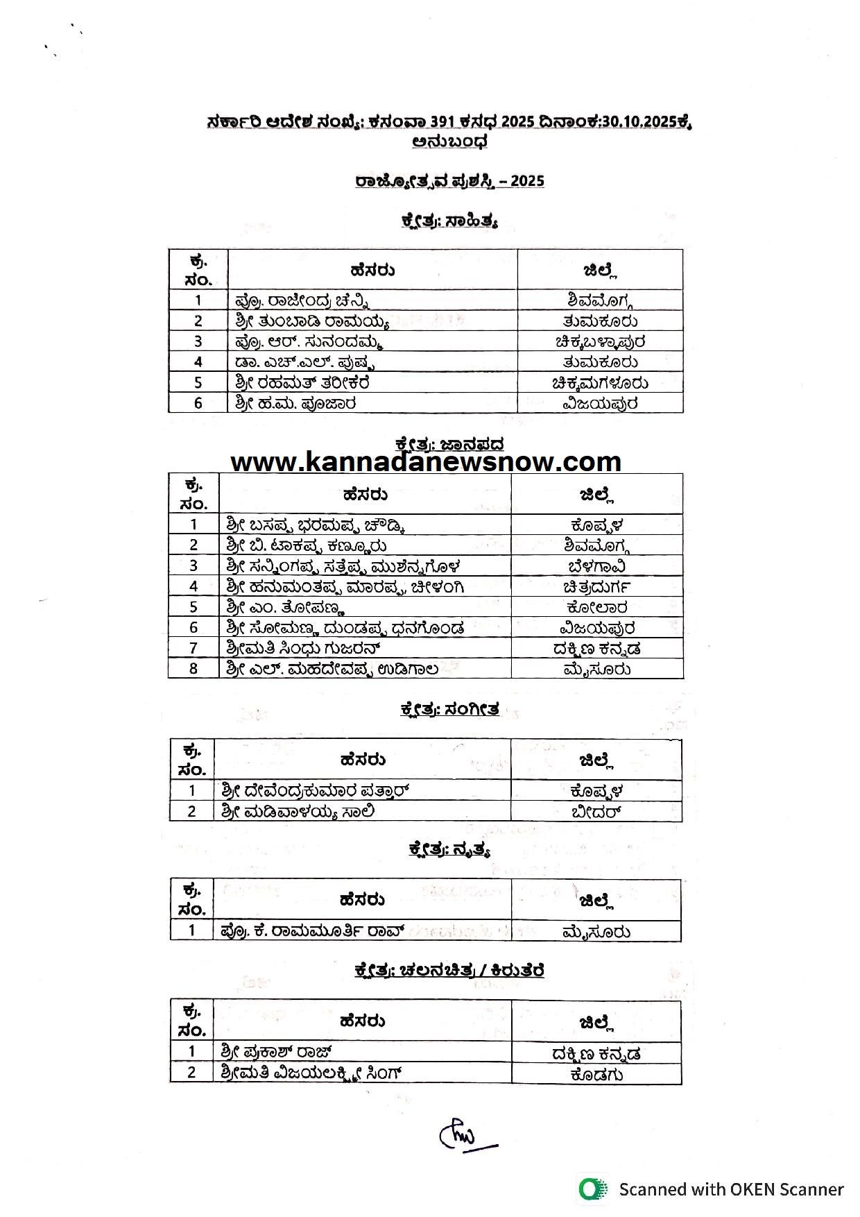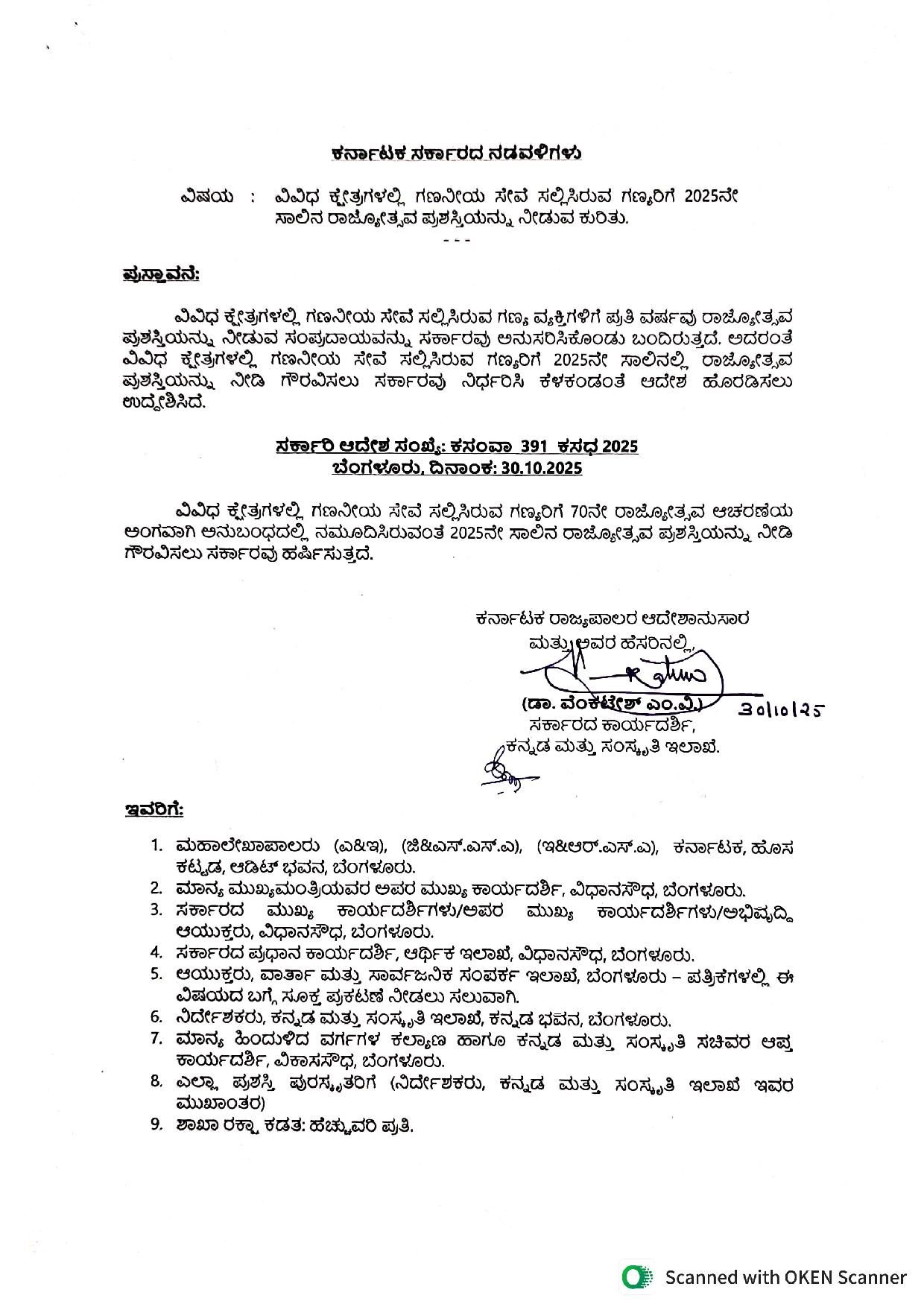 ಹೀಗಿದೆ 2025ನೇ ಸಾಲಿನ ರಾಜ್ಯೋತ್ಸವ ಪ್ರಶಸ್ತಿ ಪುರಸ್ಕೃತರ ಪಟ್ಟಿ