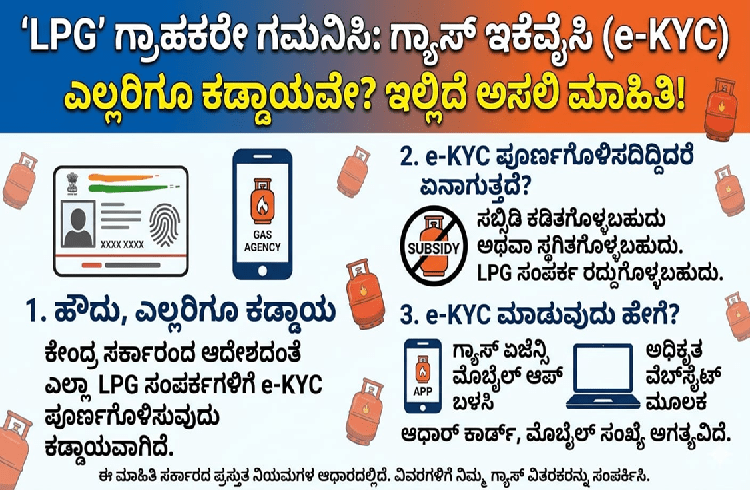 ಹೌದು ಎಲ್ಪಿಜಿ ಗ್ರಾಹಕರು ಇಕೆವೈಸಿ ಮಾಡುವುದು ಕಡ್ಡಾಯ ಎನ್ನುವಂತಹ ಸುದ್ದಿ ಎರಡು ದಿನಗಳಿಂದ ಕೇಳಿಬರುತ್ತಿದೆ. ಇದೇ ವೇಳೆ, ಪೆಟ್ರೋಲಿಯಂ ಮತ್ತು ನೈಸರ್ಗಿಕ ಅನಿಲ ಸಚಿವಾಲಯವು ಈ ವಿಚಾರದ ಬಗ್ಗೆ ಸ್ಪಷ್ಟನೆ ಕೊಟ್ಟಿದ್ದು, ಆಧಾರ್ ಬಯೋಮೆಟ್ರಿಲ್ ದೃಢೀಕರಣ ಅಥವಾ ಇಕೆವೈಸಿಯು ಎಲ್ಲಾ ಎಲ್ಪಿಜಿ ಗ್ರಾಹಕರಿಗೂ ಕಡ್ಡಾಯವೇನಲ್ಲ. ಇಕೆವೈಸಿ ಮಾಡಿಸಿಲ್ಲದ ಎಲ್ಪಿಜಿ ಗ್ರಾಹಕರು ಮಾತ್ರ ಈ ಗ್ಯಾಸ್ ಪಡೆಯಲು ಇಕೆವೈಸಿ ಮಾಡುವುದು ಕಡ್ಡಾಯ ಎಂದು ಸಚಿವಾಲಯವು ಹೇಳಿದೆ.