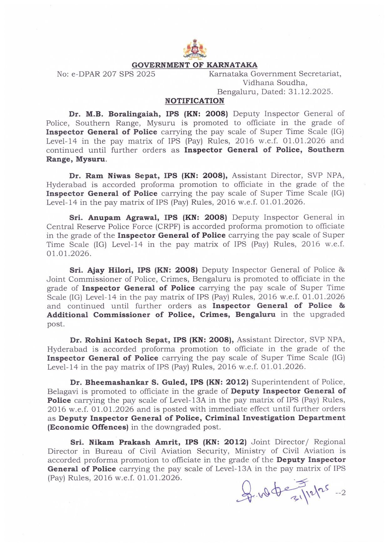ಹೀಗಿದೆ 48 ಐಪಿಎಸ್ ಅಧಿಕಾರಿಗಳ ವರ್ಗಾವಣೆ ಪಟ್ಟಿ