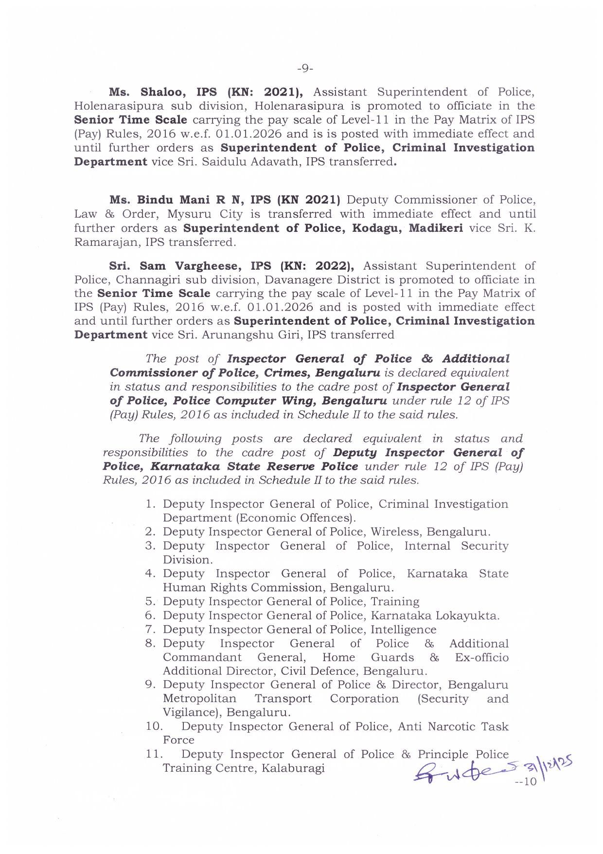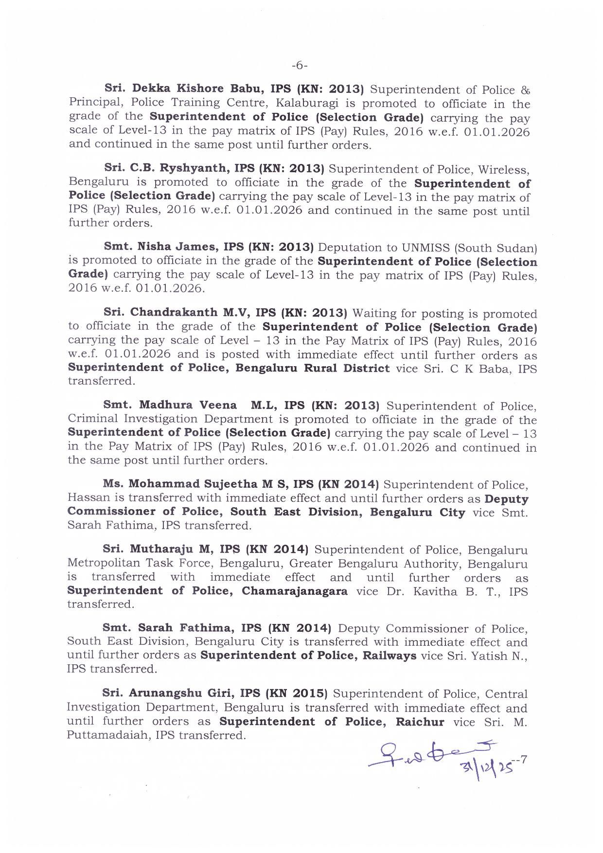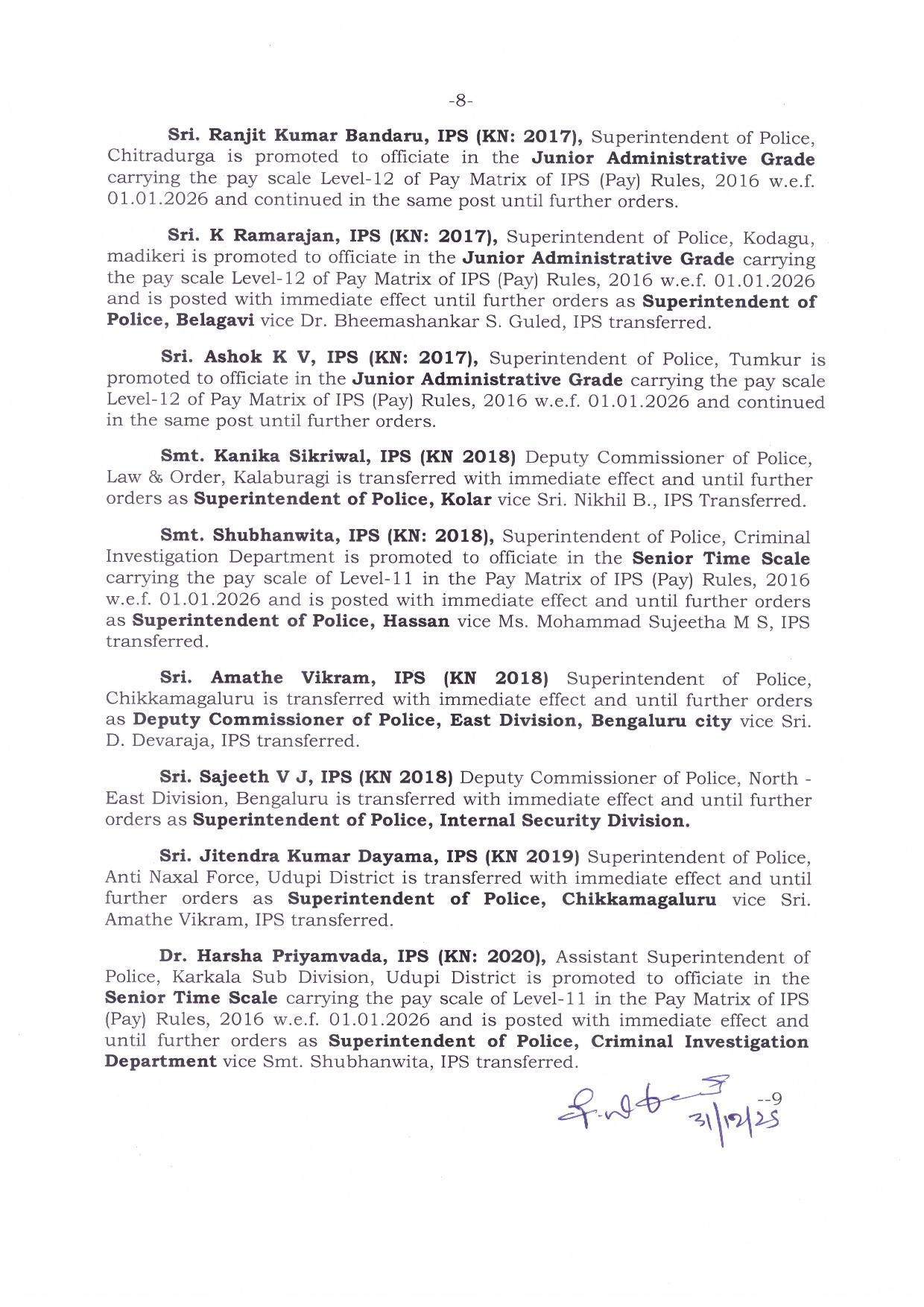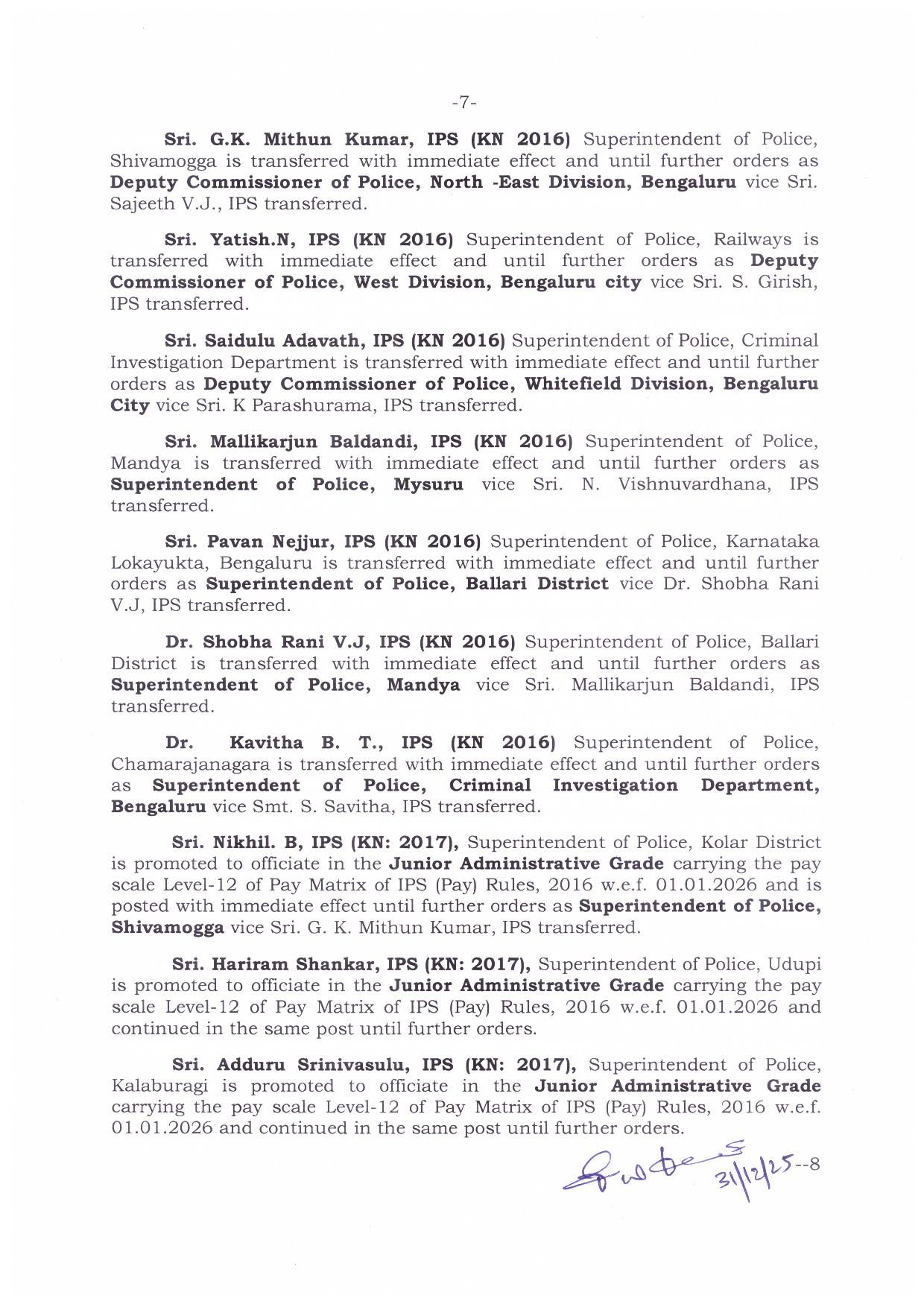 ಇನ್ನೂ ಸಾಗರದ ಎಎಸ್ಪಿಯಾಗಿದ್ದಂತ ಯತೀಶ್ ಅವರನ್ನು ಬೆಂಗಳೂರಿನ ಪಶ್ಚಿಮ ವಿಭಾಗದ ಡಿಸಿಪಿಯಾಗಿ ನೇಮಕ ಮಾಡಲಾಗಿದೆ. ಕೋಲಾರದ ಎಸ್ಪಿಯಾಗಿದ್ದಂತ ನಿಖಿಲ್ ಅವರನ್ನು ಶಿವಮೊಗ್ಗ ಜಿಲ್ಲಾ ಪೊಲೀಸ್ ವರಿಷ್ಠಾಧಿಕಾರಿಯಾಗಿ ನೇಮಿಸಲಾಗಿದೆ.